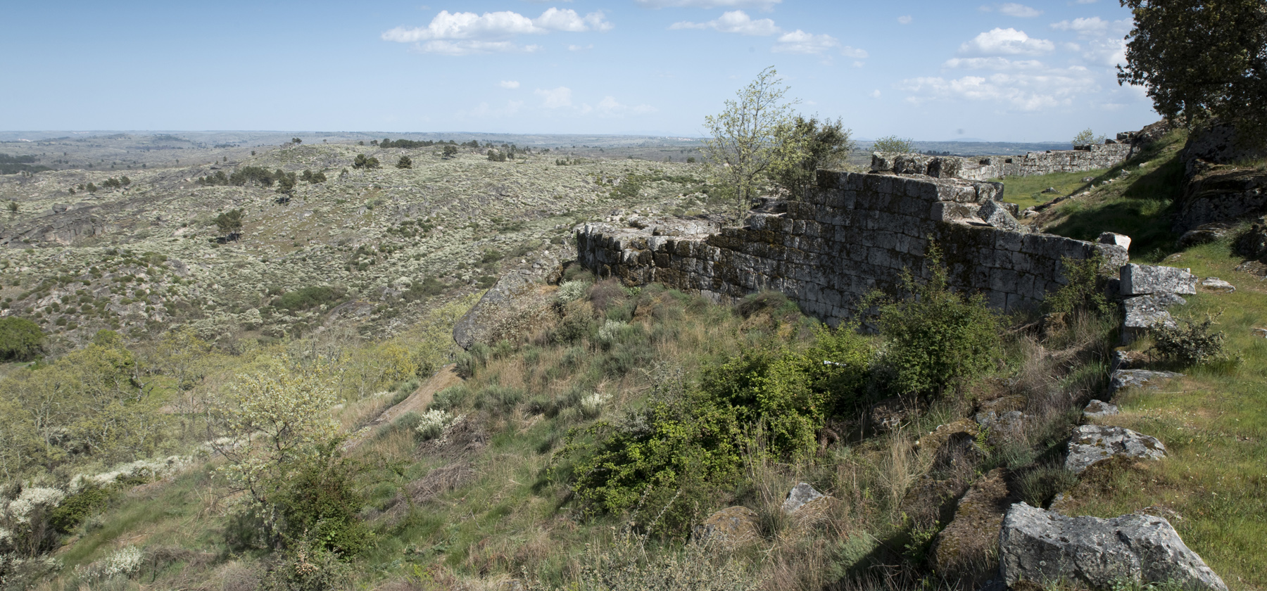 As muralhas estão no topo de um cabeço com vista ampla sobre a região. Ouve-se apenas o zumbido do vento e o olhar perde-se numa vastidão de muitas dezenas de quilómetros.