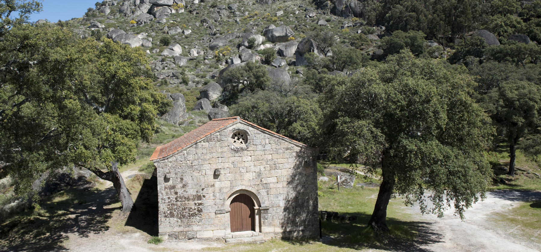 A Capela de São Pedro de Vir-a-Corça é um lugar isolado, entre a encosta de penedos de Monsanto e a aldeia do Carroqueiro.