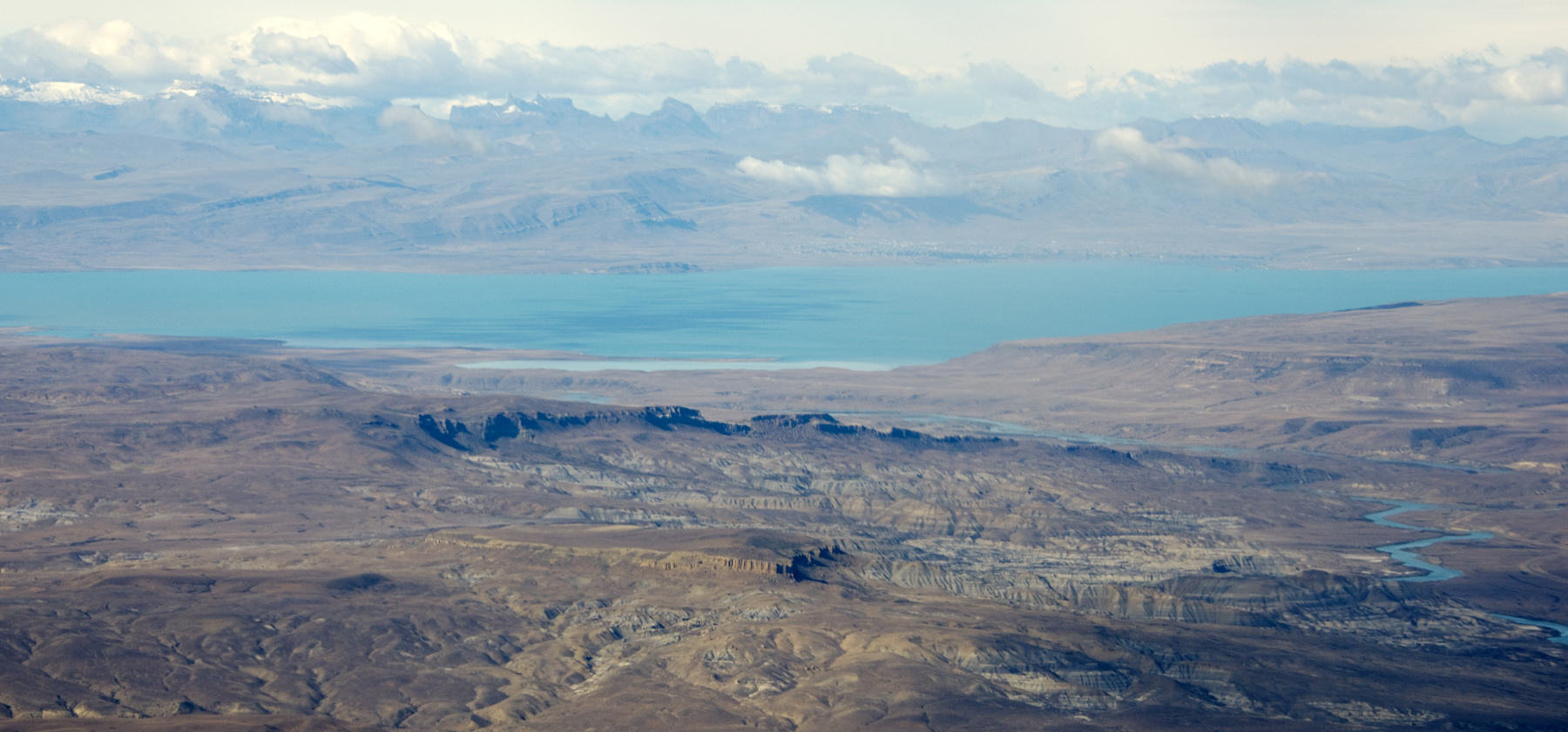 A cor castanha da terra escurece em alguns pontos devido a vegetação rasteira e vales que rasgam a crosta. Com o aproximar de Calafate , surge uma linha serpenteada, de cor viva, esmeralda, que contrasta com o castanho seco. Uma cobra azul.