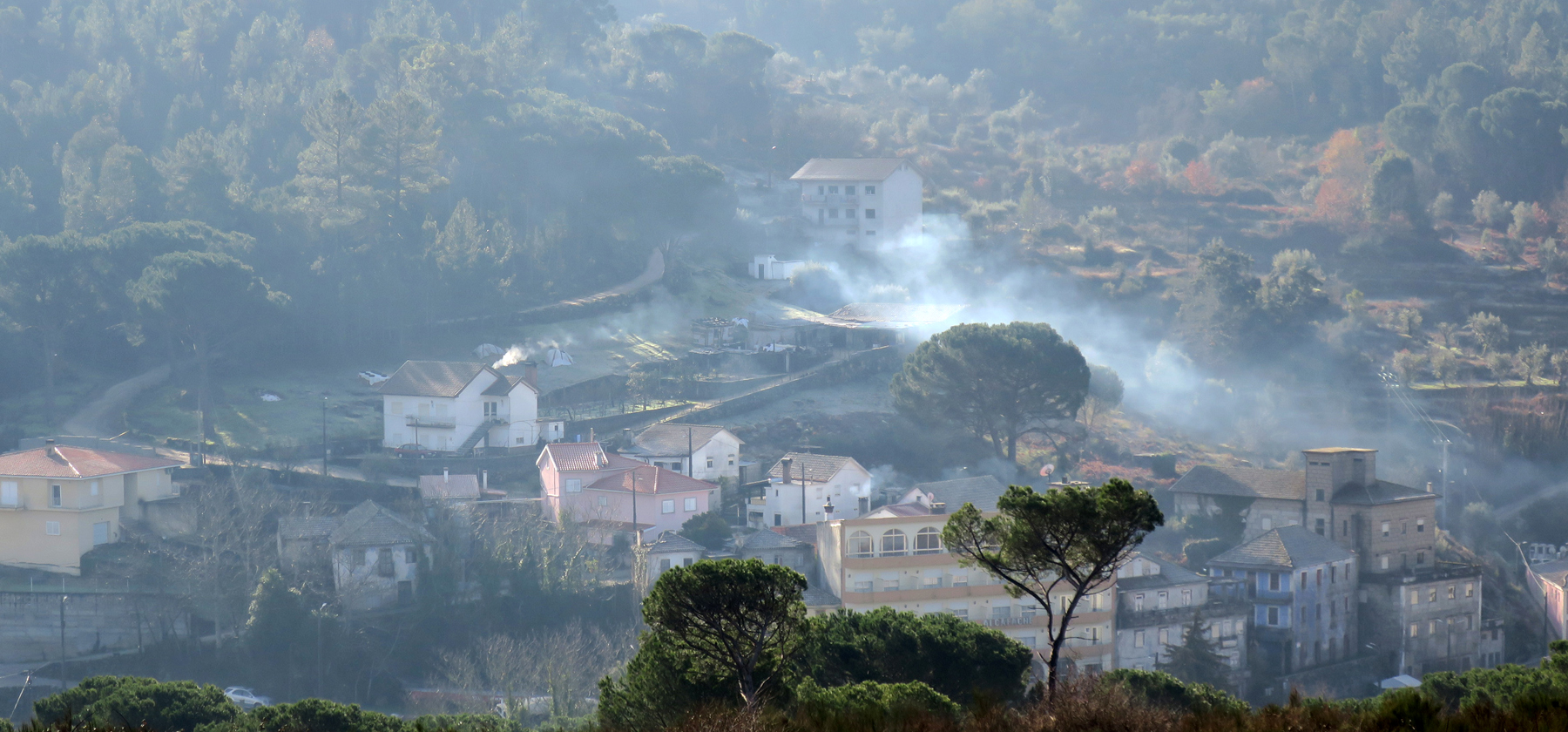 Quando no aproximamos de Alcafache, numa manhã relativamente fria e solarenga, o fumo das chaminés e das queimadas adensava a névoa no meio do vale.