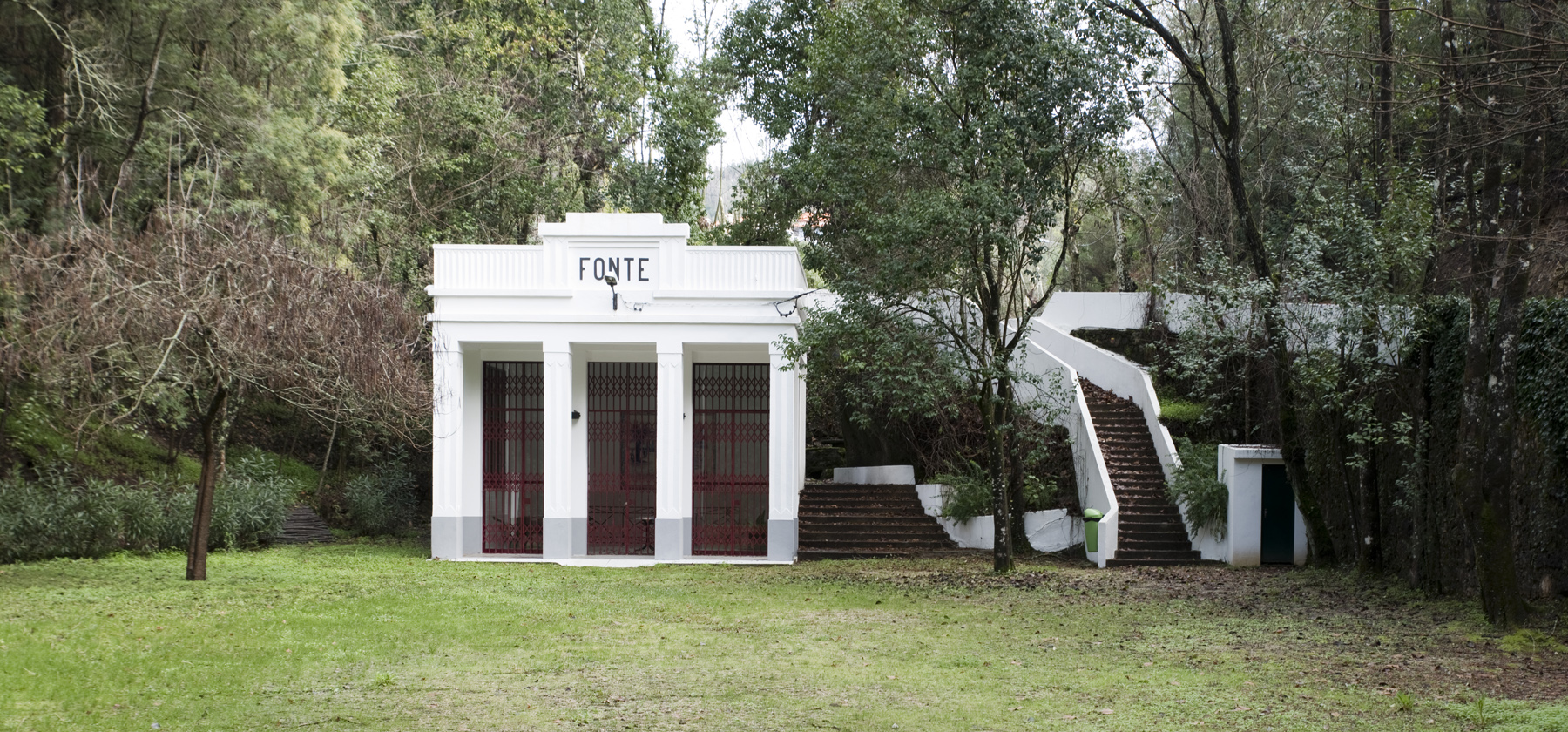 O único som que se ouve é o da água. O ambiente é ainda mais bucólico porque está separado da aldeia e é como se fosse uma enorme concha, rodeada de encostas. Domina o verde da vegetação. É quebrado pelo branco do edifício da fonte onde se ingere a água.