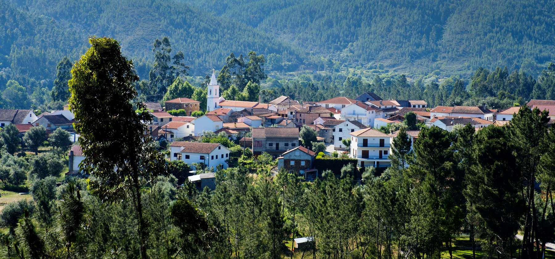 O rio pode ser visto do alto da aldeia, próximo da igreja. Temos um miradouro que revela a largura do Zêzere e que é ampla.