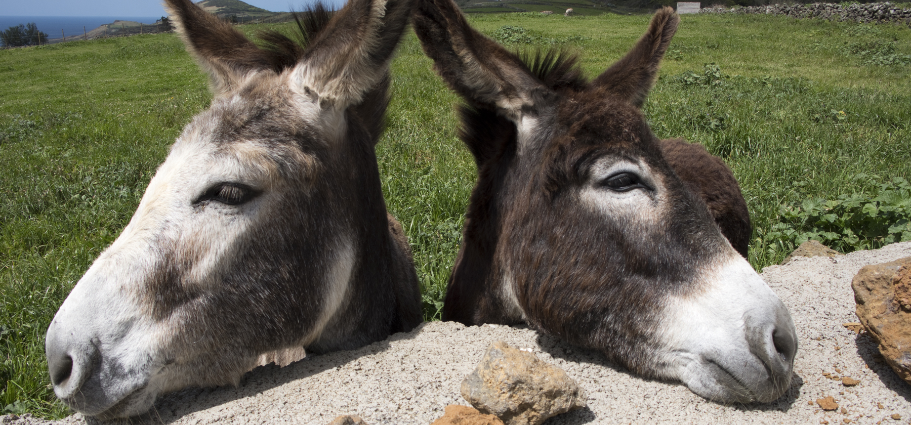 Num ambiente calmo, distendido entre o verde do pasto e o Oceano Atlântico que fica mesmo ao lado. São todos exemplares do Burro Anão da Graciosa, uma raça autóctone reconhecida há três anos.