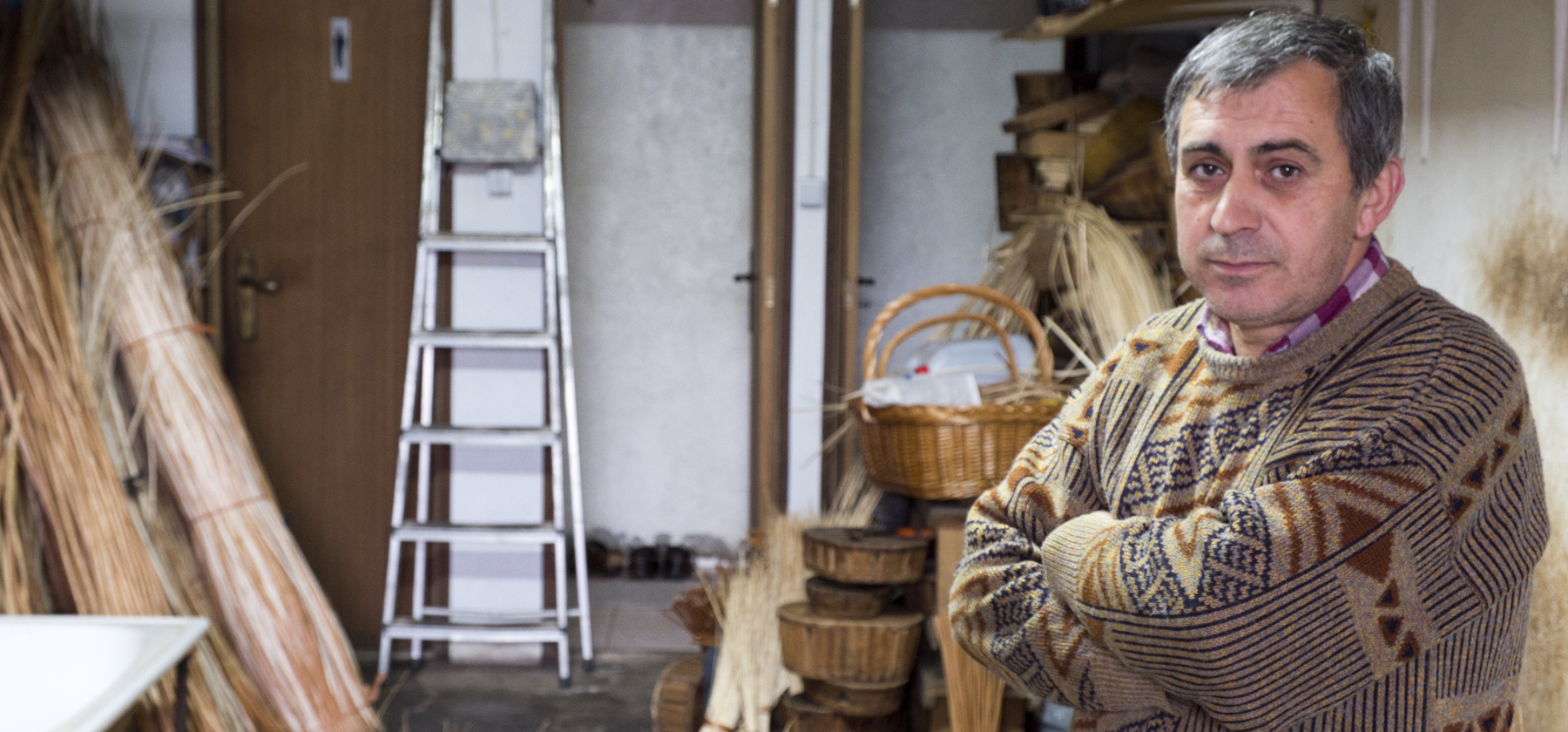 António Vaz é artesão. Falei com ele na loja da casa onde trabalha com a mulher e por vezes com mais um ou dois empregados. É num ambiente escuro, trabalham sentados em pequenos bancos, ao lado de vime e verga que está arrumada ou espalhada por quase todo o compartimento.