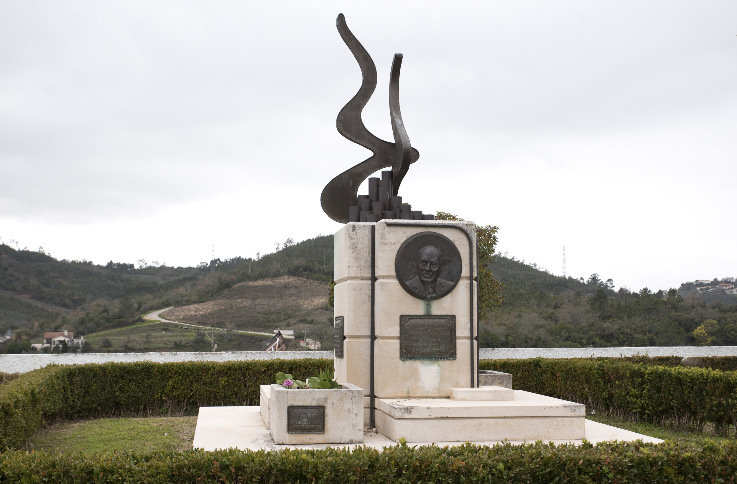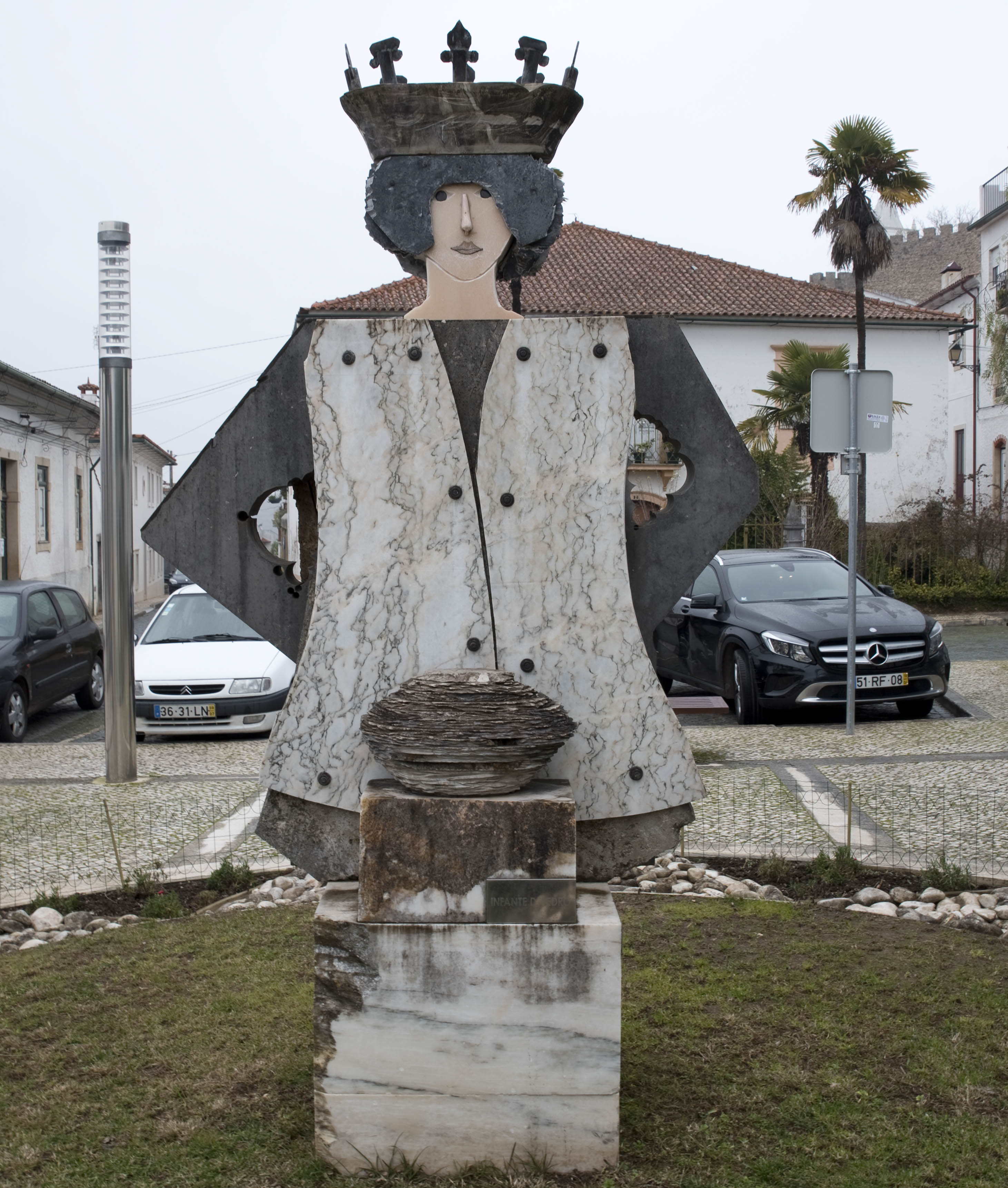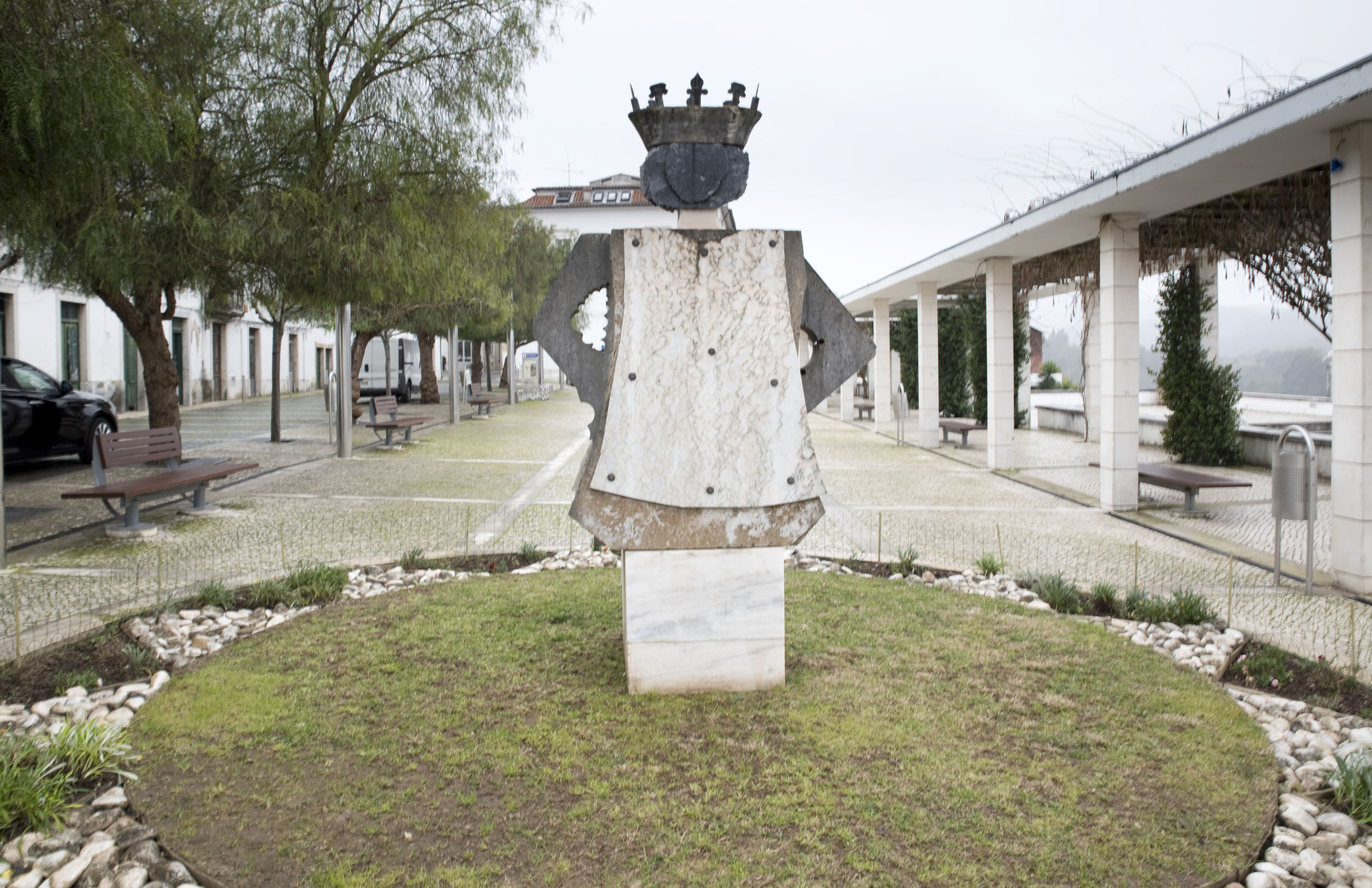 Numa praça da vila D. Pedro está retratado num interessante trabalho do escultor João Cutileiro.