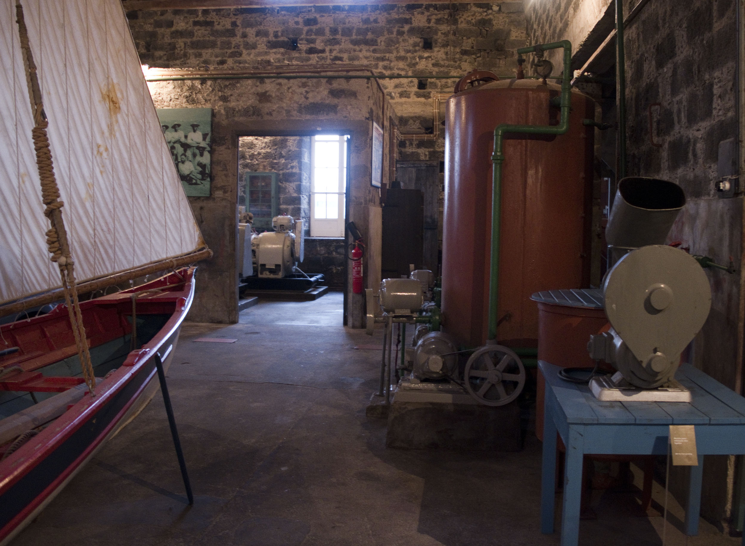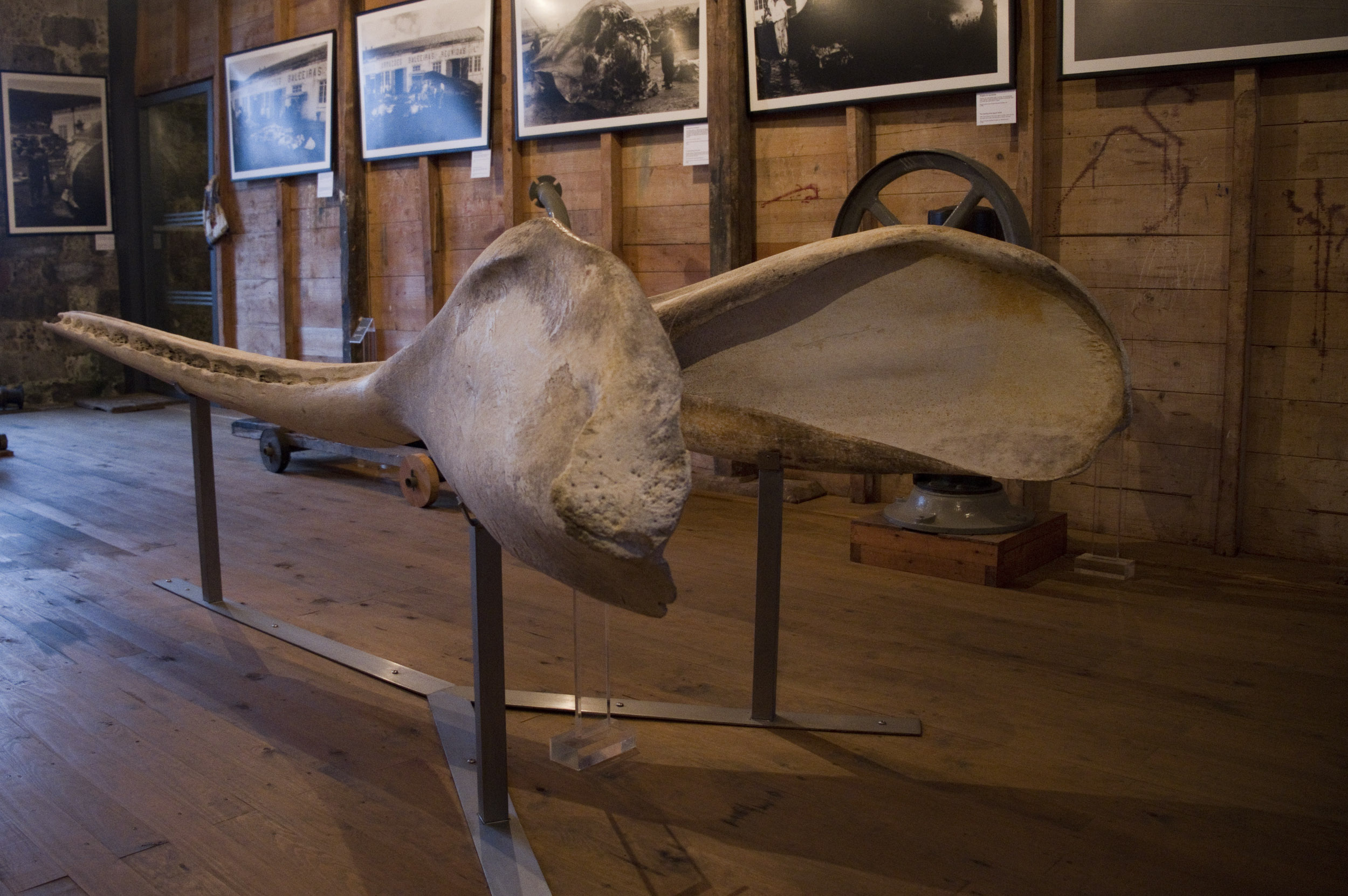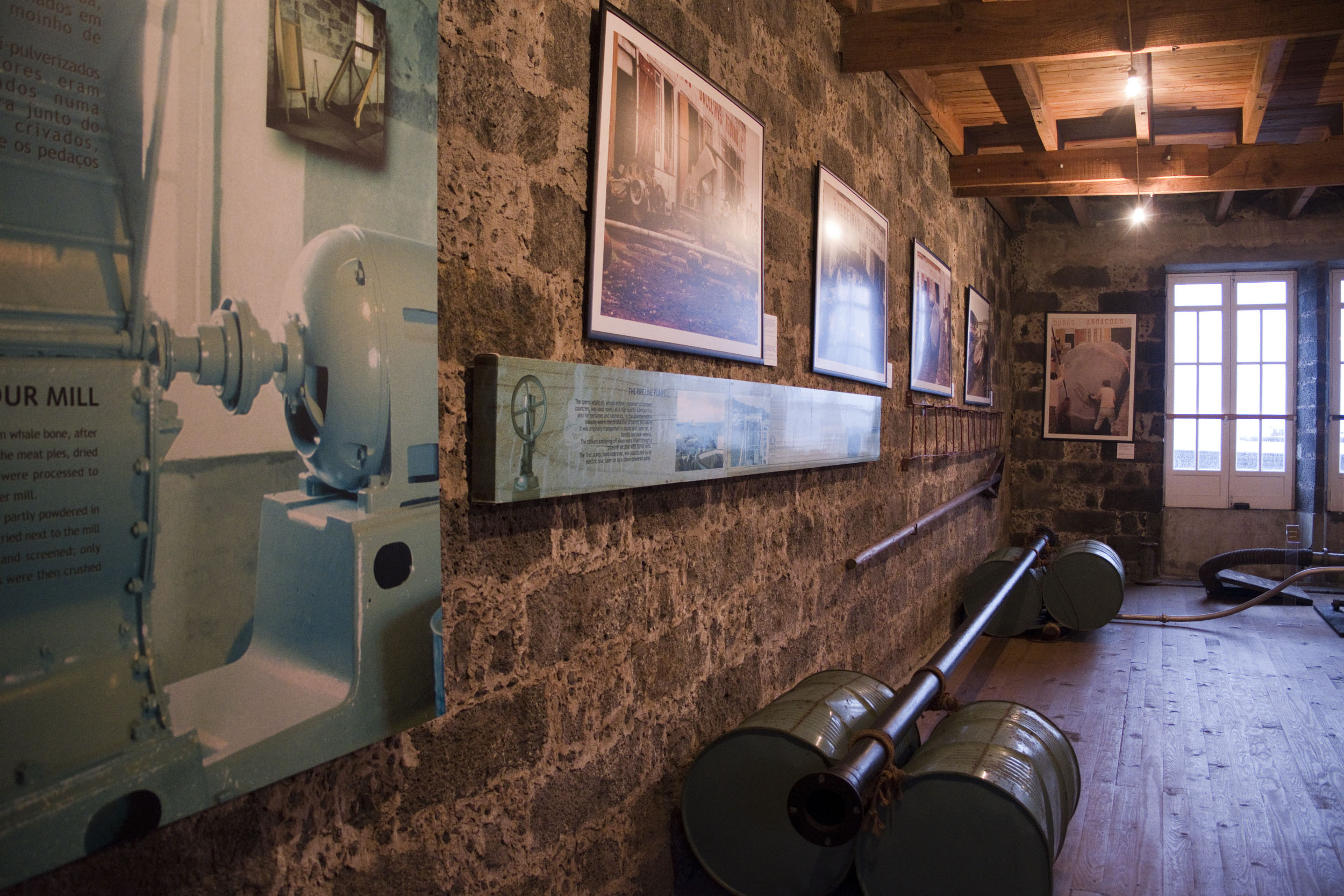 No interior podemos ver máquinas enormes para secar, transformar e aprovisionar os produtos derivados. Há também uma camioneta, dois geradores, um moinho de farinhas, várias fotografias antigas e, segundo André Cabral, a peça que chama mais a atenção, um maxilar de um cachalote. Foi oferecido ao Museu depois de ter sido encontrado no fundo do mar.