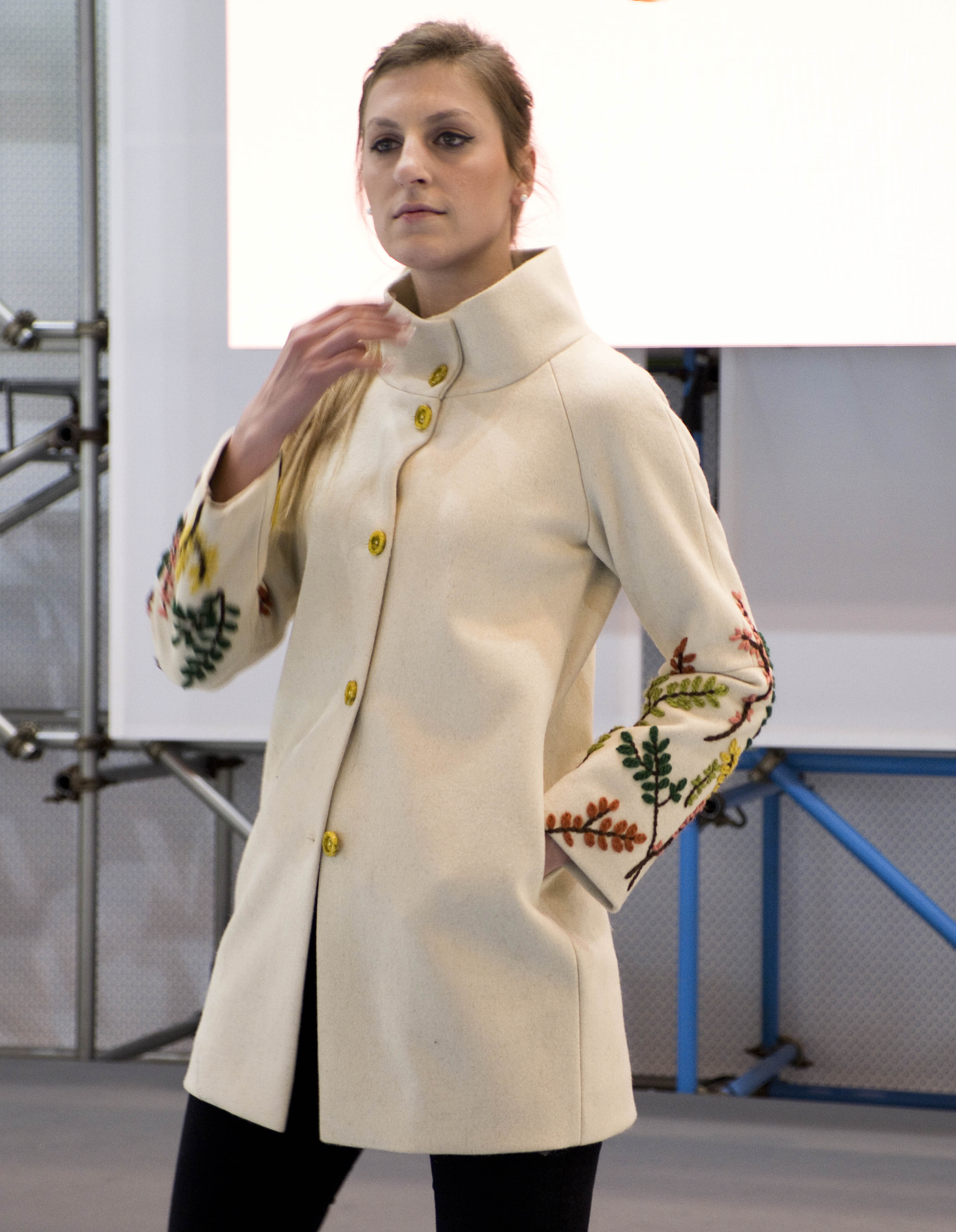 No entanto, procura sempre salvaguardar a natureza da matéria prima principal: “sendo um tecido em pura lã, uma matéria prima nobre, temos de ter cuidado na conjugação com outros materiais. Um botão, bordados ou arte aplicada. É preciso respeitar o que já existe, a tradição.”