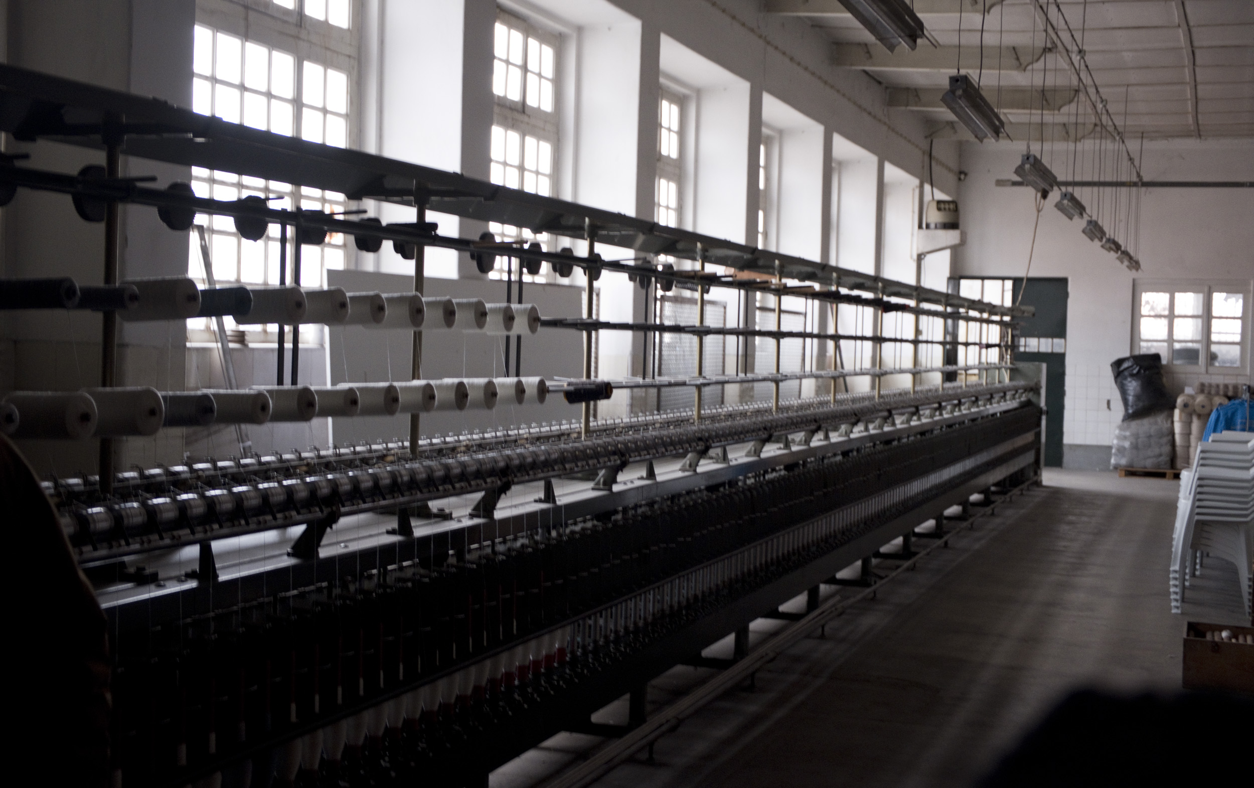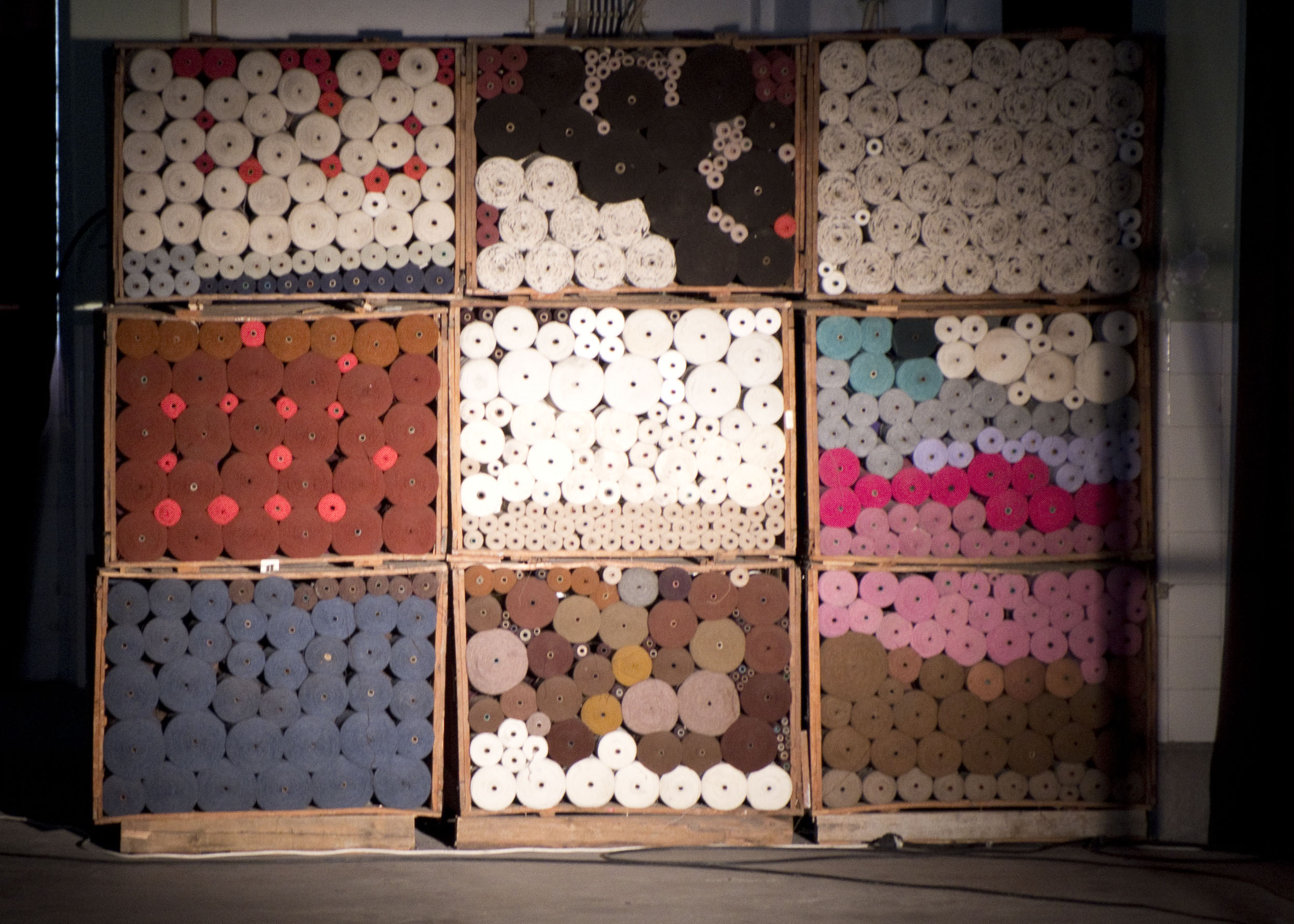 Em algumas salas estão muitos sacos com lã que foi produzida na fábrica e um dos propósitos é manter vivo este ambiente, preservar o património da instalação fabril.