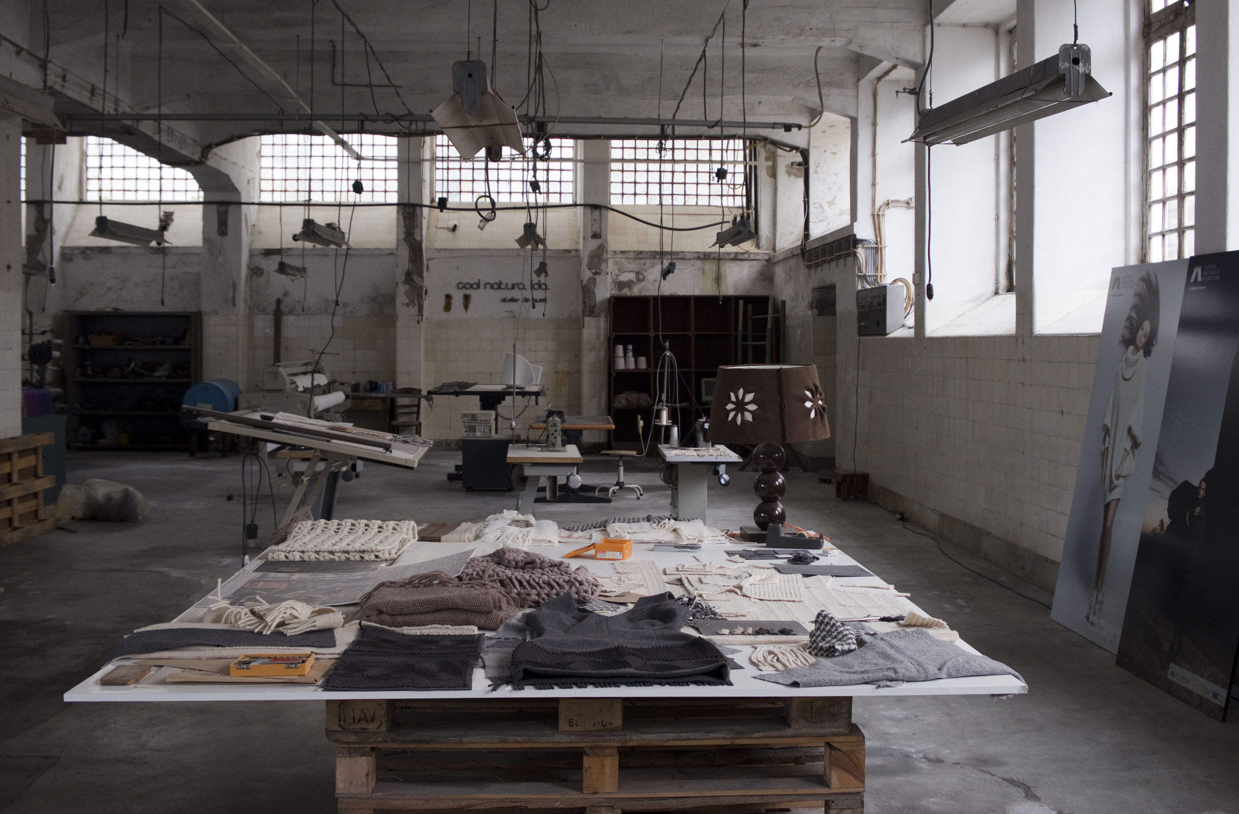 Há também um espaço onde o criador de moda experimenta, cria e concebe projectos. É no meio de um enorme salão onde o cheiro, as máquinas, a matéria prima e a luz serena nos envolve num ambiente criativo.