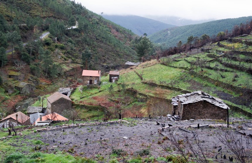 Domina o som da água, a cor do xisto, o brilho da lousa nos telhados e o verde dos sucalcos nas encostas. Um pouco mais longe deparamos com a natureza morta. Do fogo, das cinzas, dos pinheiros queimados que ainda lá estavam e que cercam toda a zona envolvente.