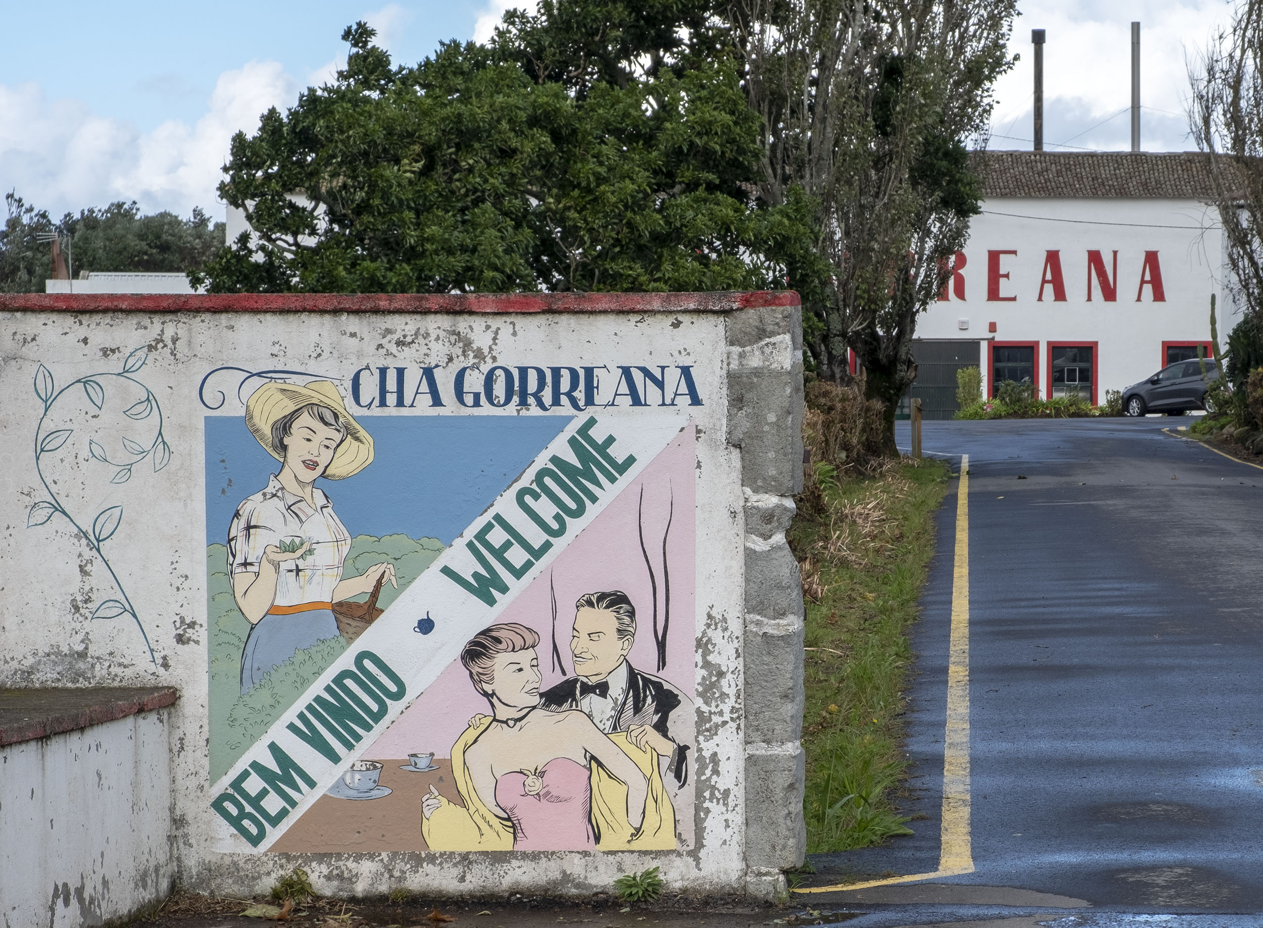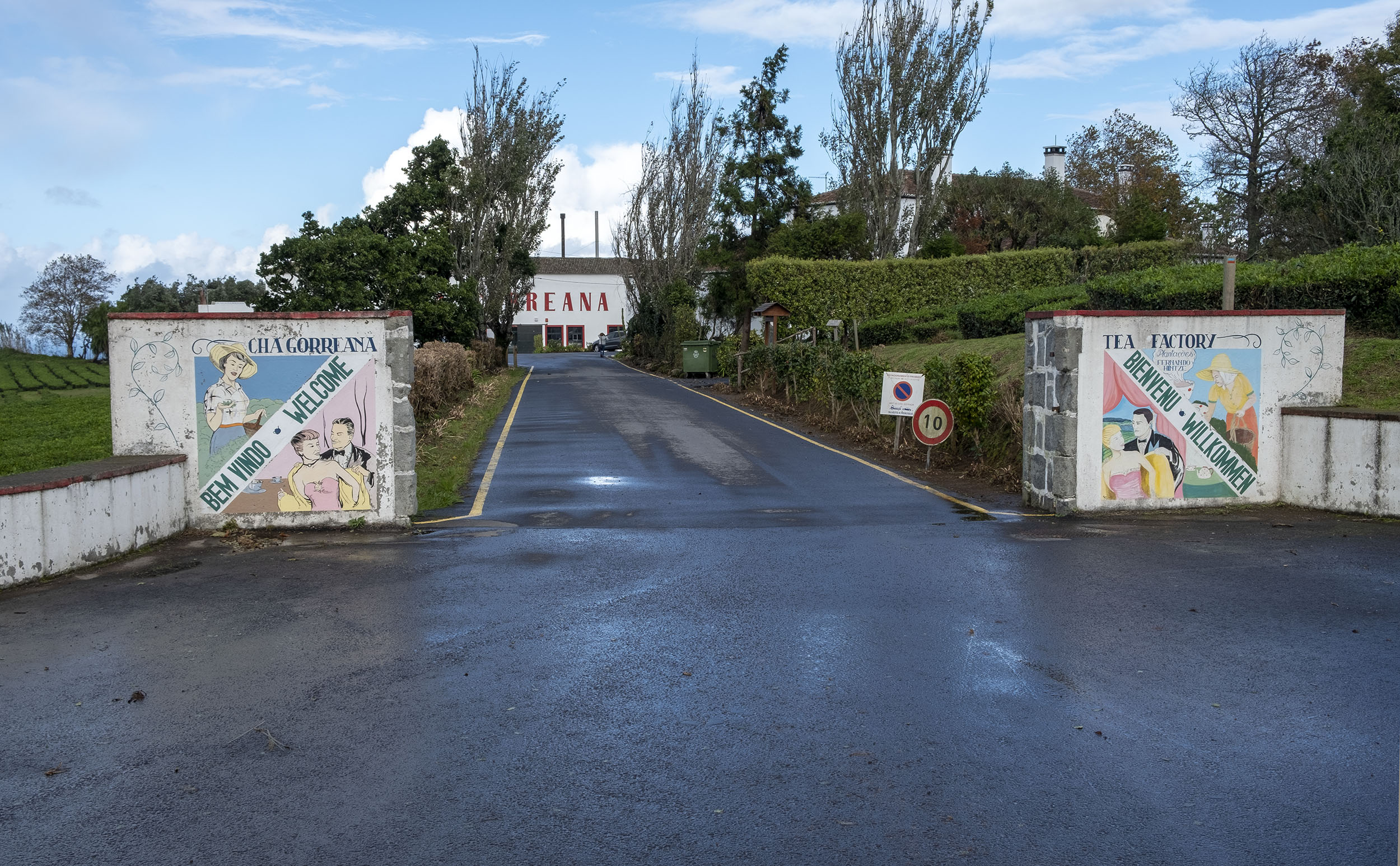 Ao lado da fábrica Gorreana vemos várias plantações. Esta é a única fábrica que tem o cultivo permanente de chá desde a sua introdução nos Açores no inicio do século XIX.