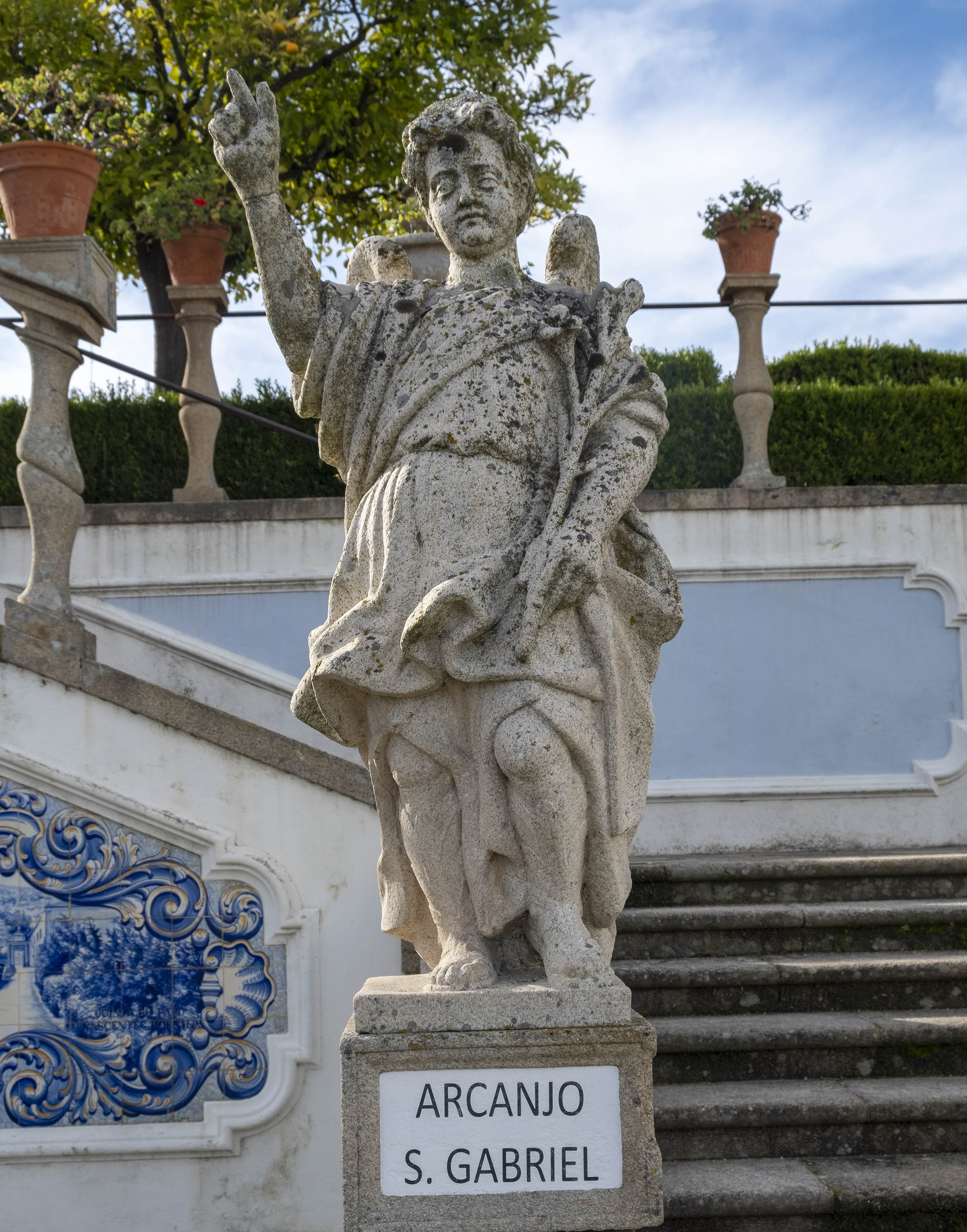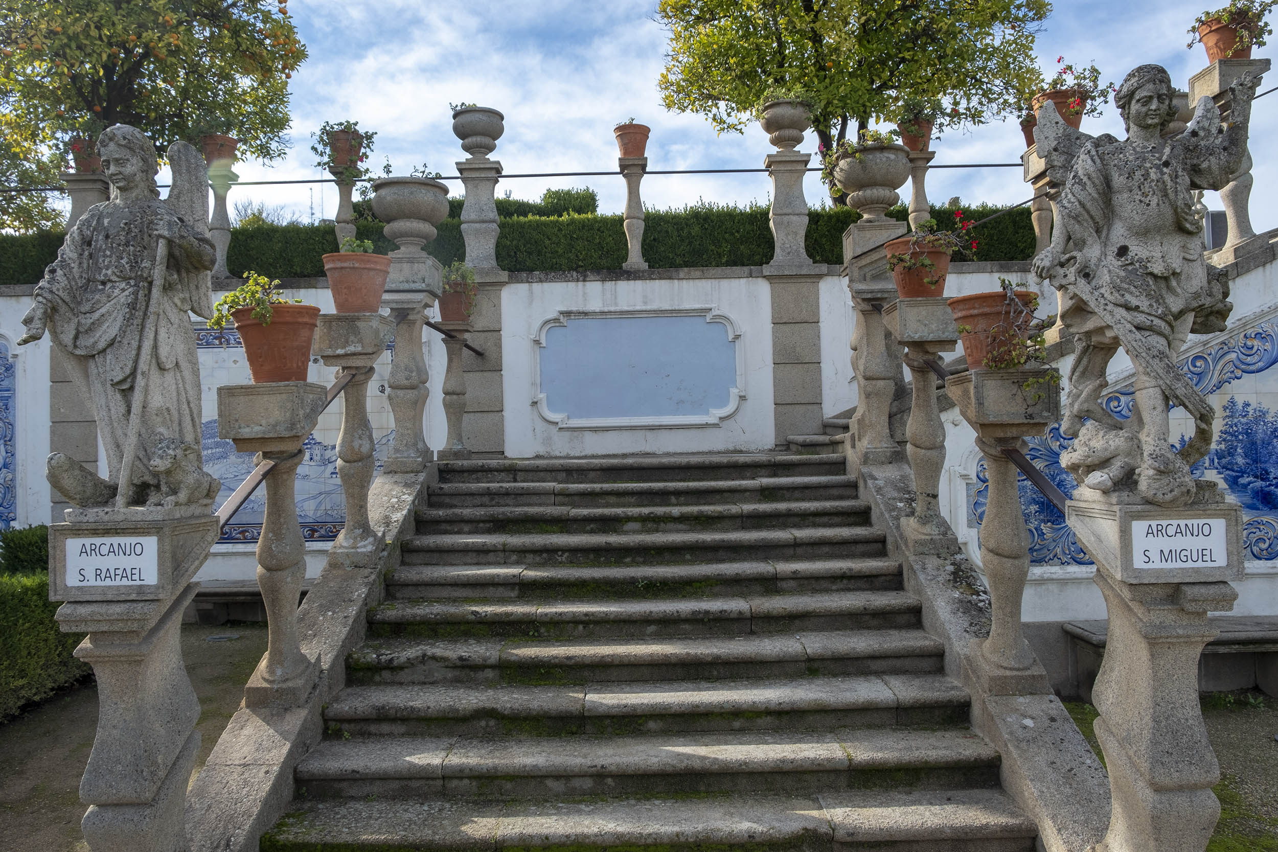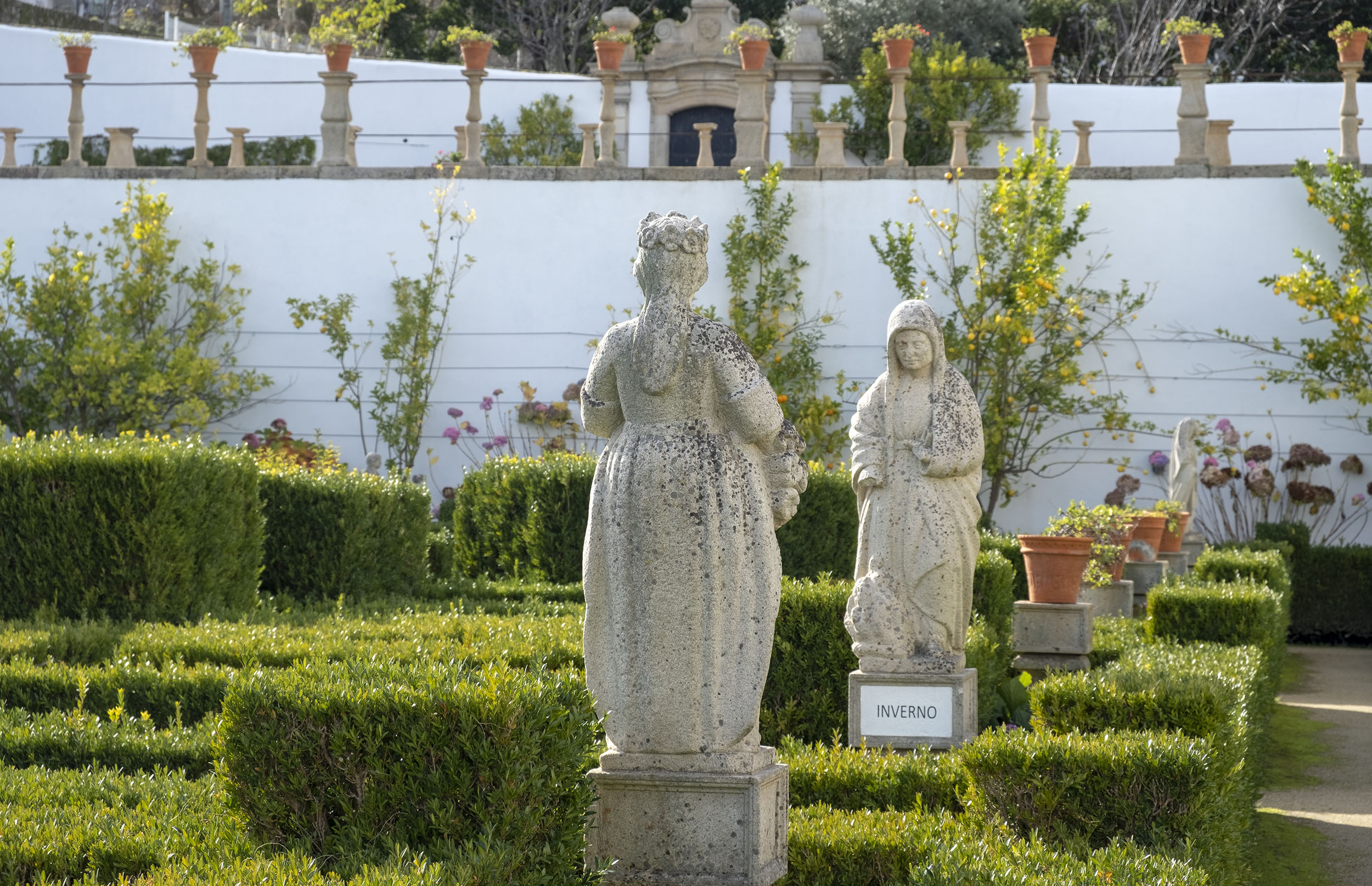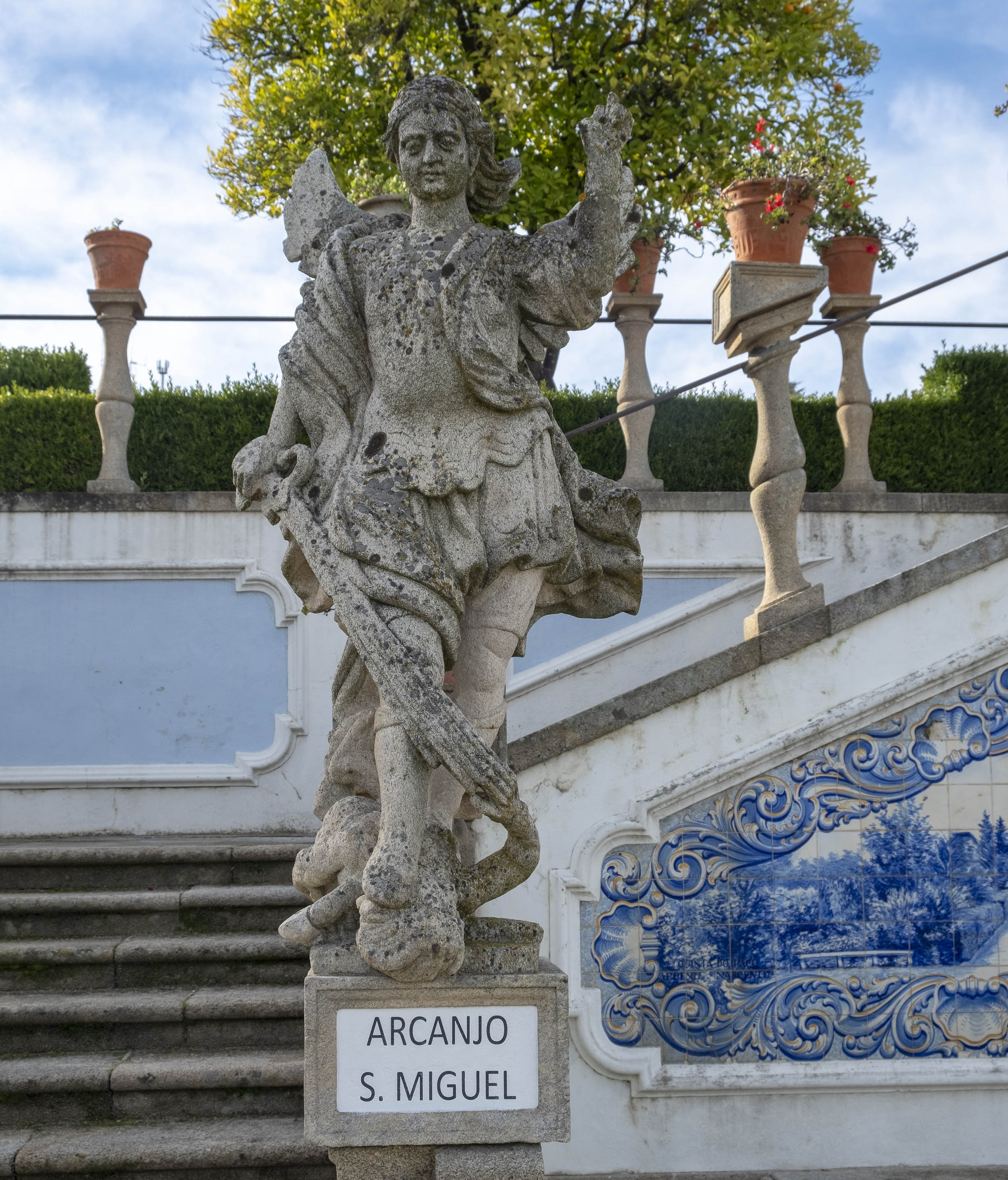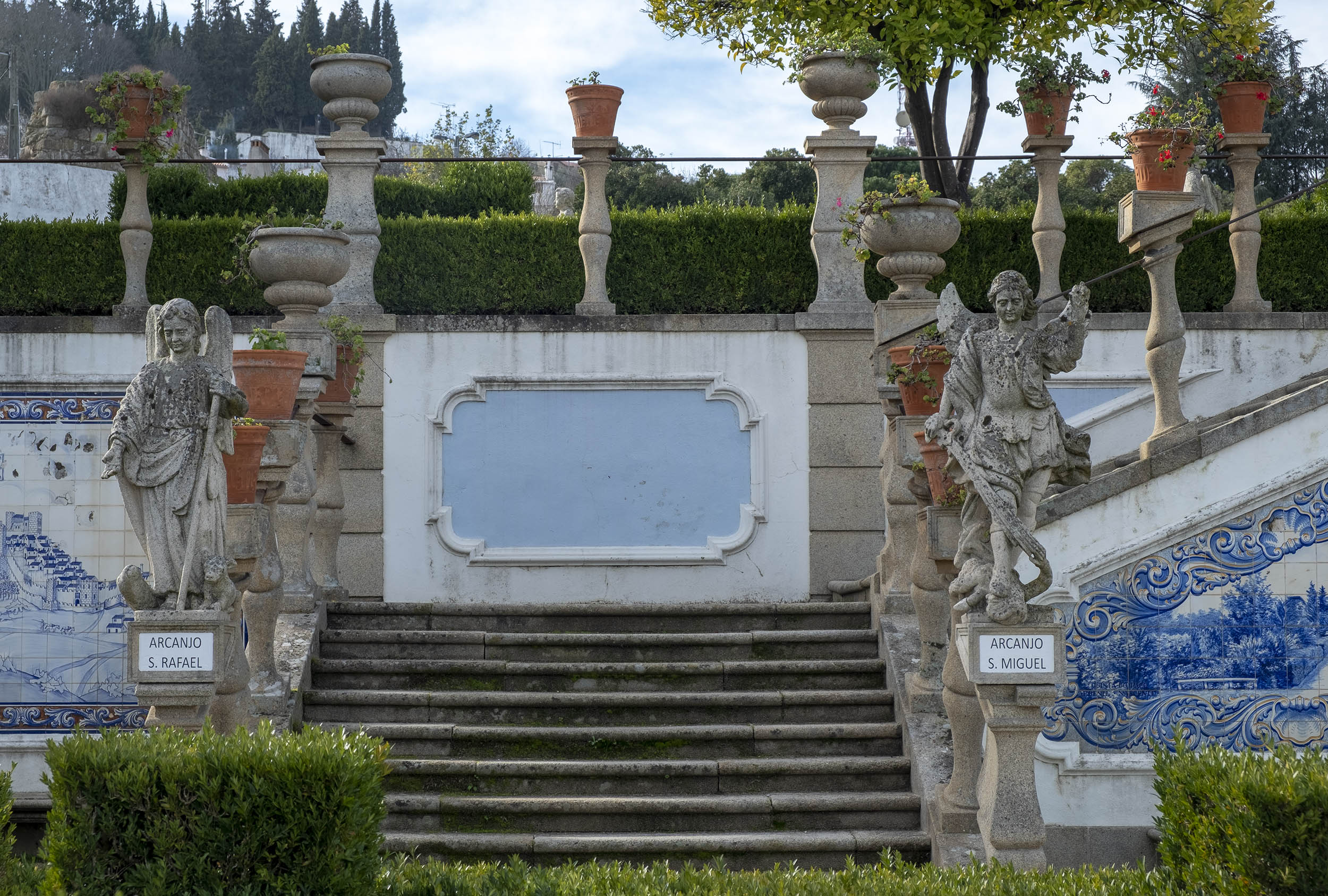 As estátuas estão dispersas ou alinhada ao lado de longas escadarias. O jardim tem ainda painéis de azulejos, muitos desenhos e recortes feitos com a arte dos jardineiros.