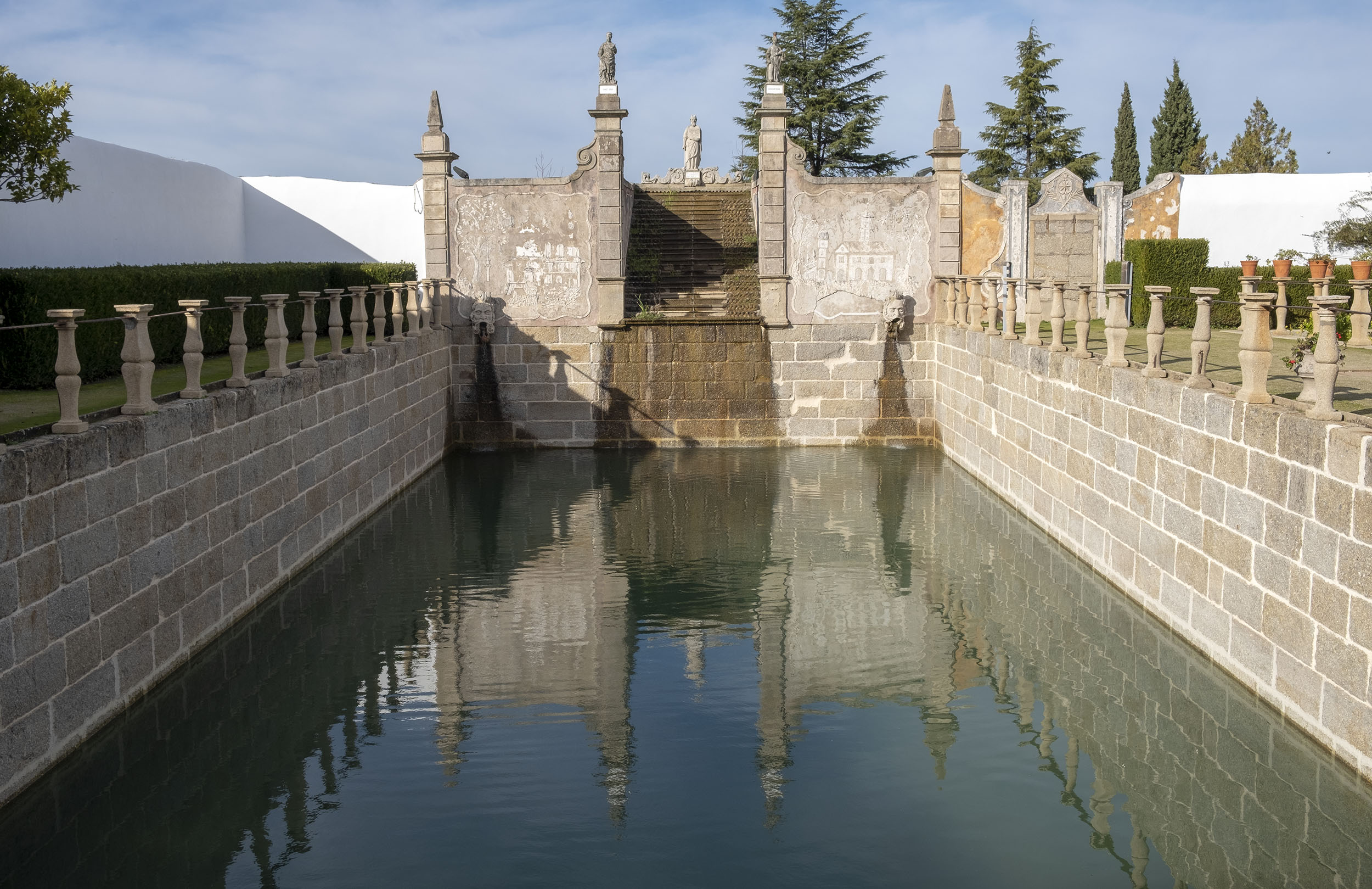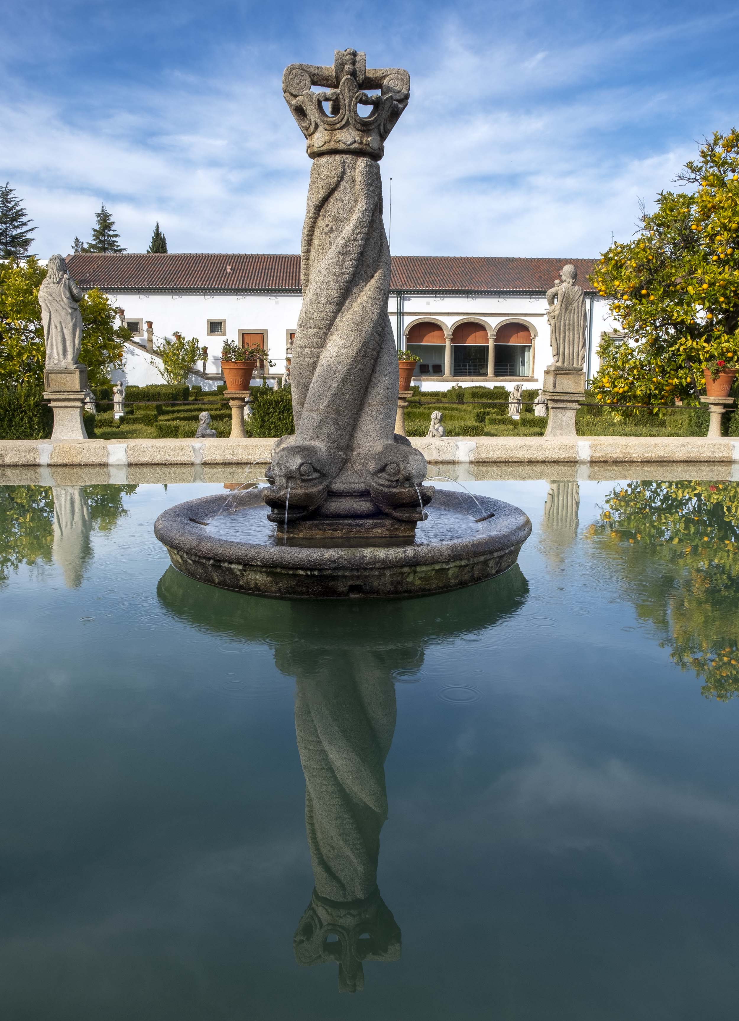 A água está presente em quase todo o lado. Em repuxos, lagos, um jardim alagado e até um tanque onde o clero andava num pequeno bote. Quase tudo tem um significado simbólico associado à fé.