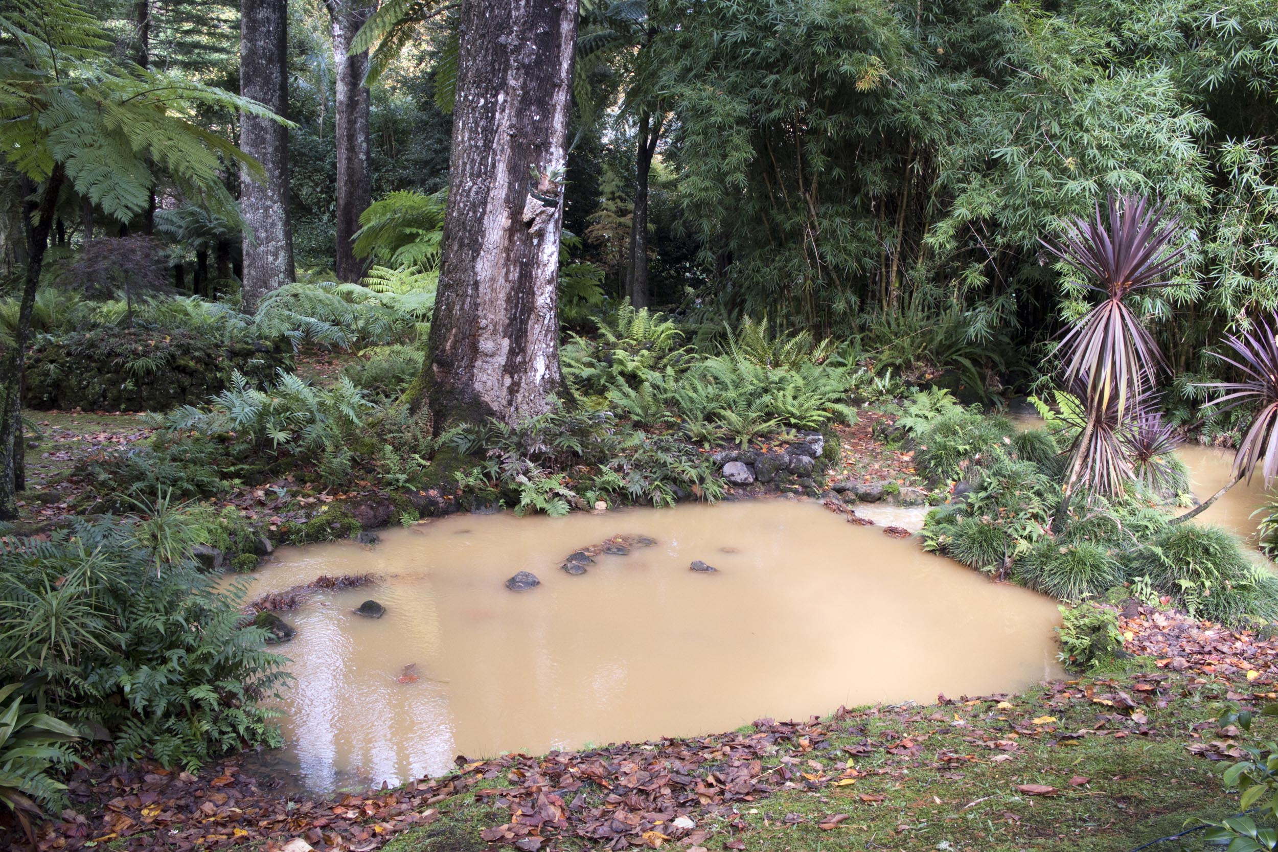 Em primeiro lugar está na cratera de um vulcão adormecido, no Vale das Furnas, na ilha de S. Miguel.