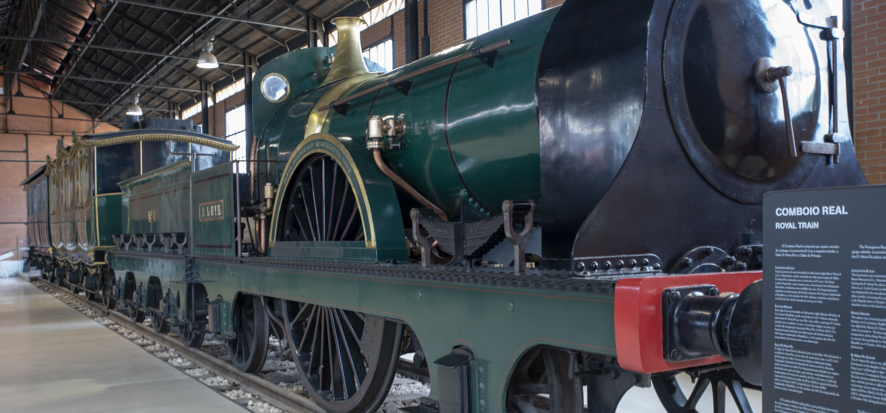O Comboio Real é composto por quatro veículos. Um foi uma oferta do rei Vítor Emanuel de Itália à sua filha, a rainha Maria Pia que casou com o rei D. Luis. É a composição mais icónica e foi uma oferta de casamento. O comboio era utilizado para deslocações da família real. A cor verde marca as quatro unidades com pequenos veios dourados. O interior é mais rico em cores nos tecidos dos assentos e do piso.