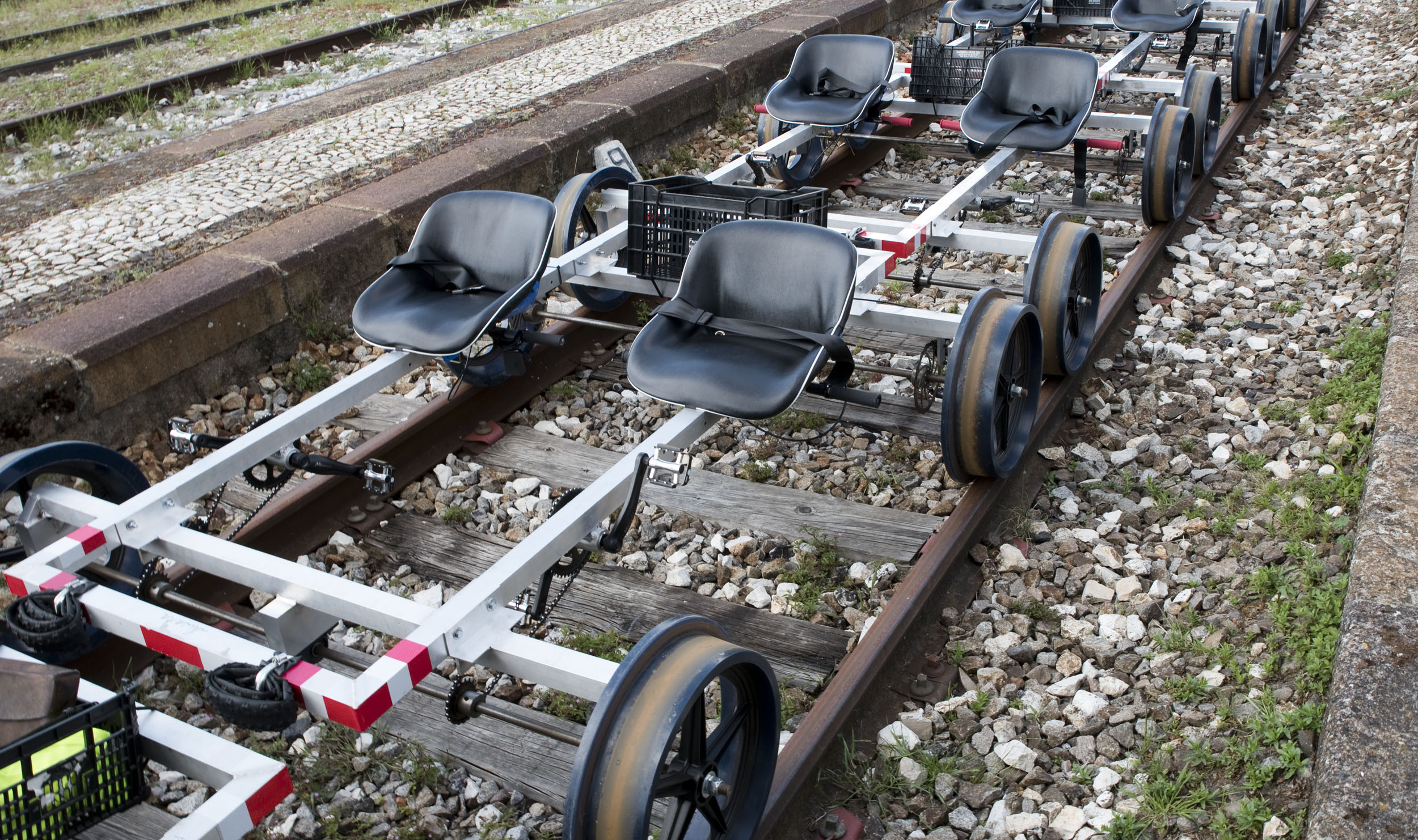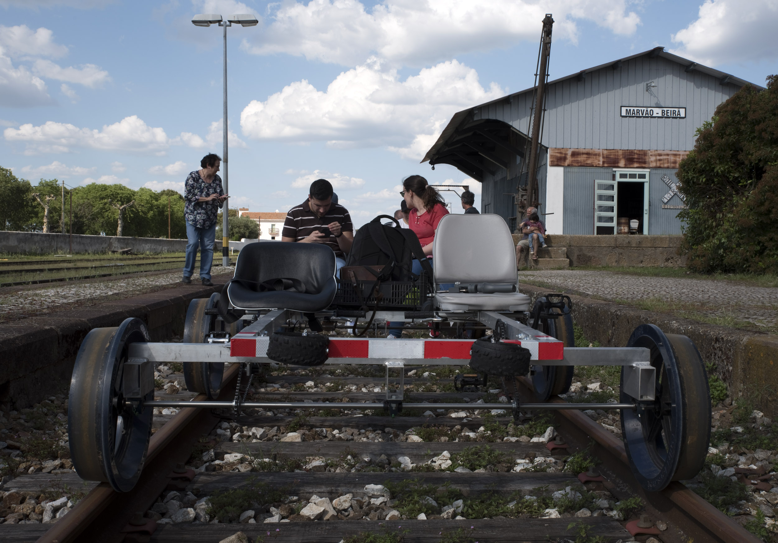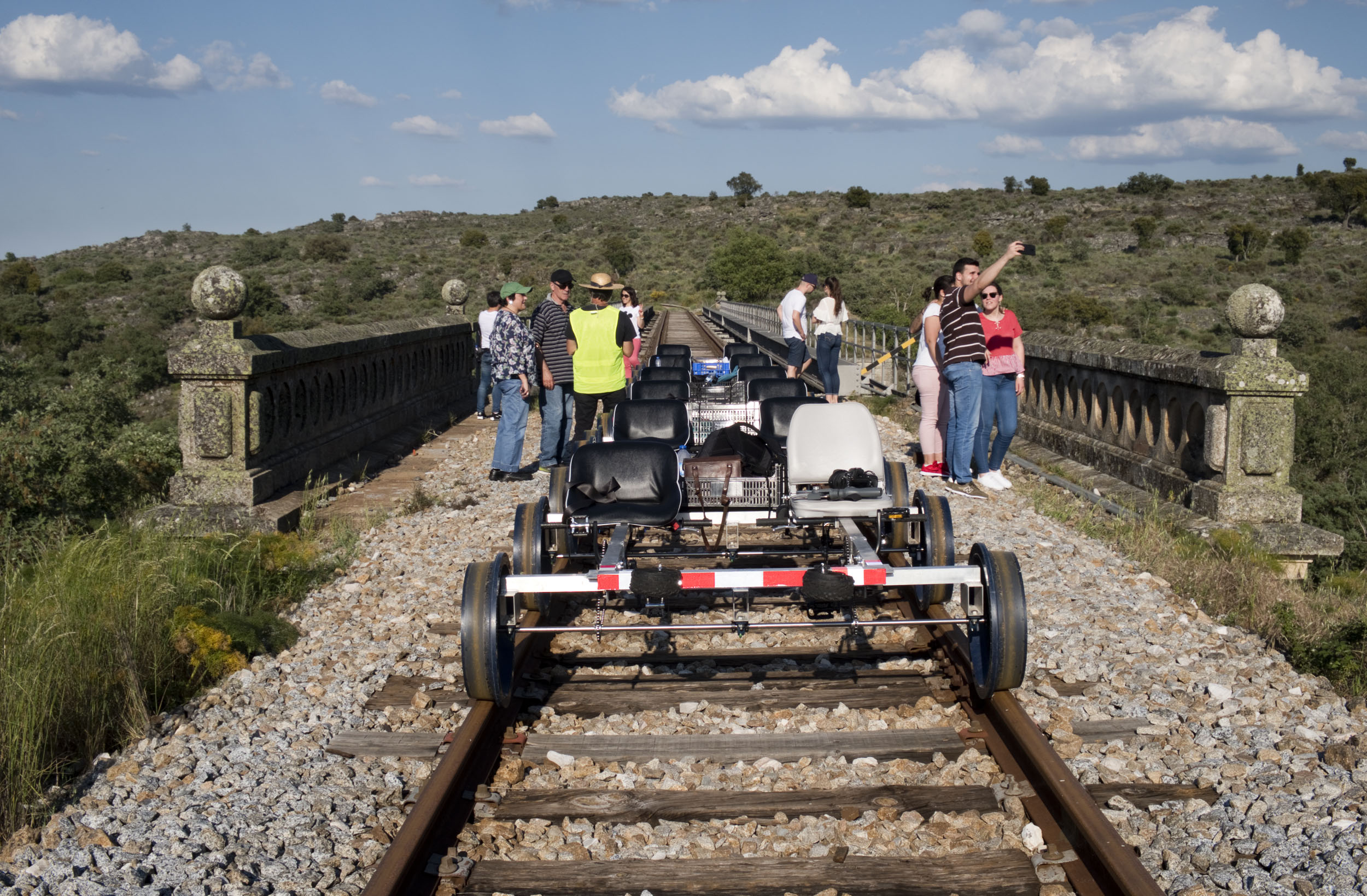 Um passeio numa antiga linha de comboio entre Marvão e Castelo de Vide num “comboio” movido a pedais e onde se descobrem bonitas paisagens do Parque Natural da Serra de S. Mamede.