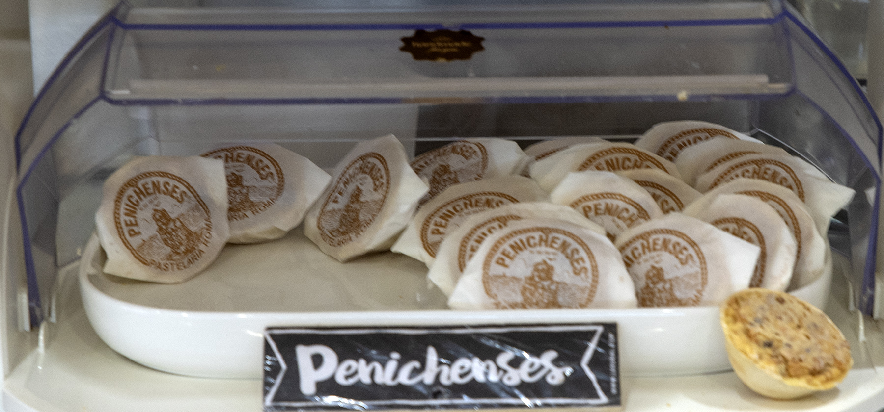 Por isso, vamos primeiro aos doces regionais que são à base de amêndoa e os mais antigos e mais vendidos são os penichenses. Diz Alberto Cruz, proprietário da Pastelaria Roma, que é um pastel feito à base de ovos e amêndoas.