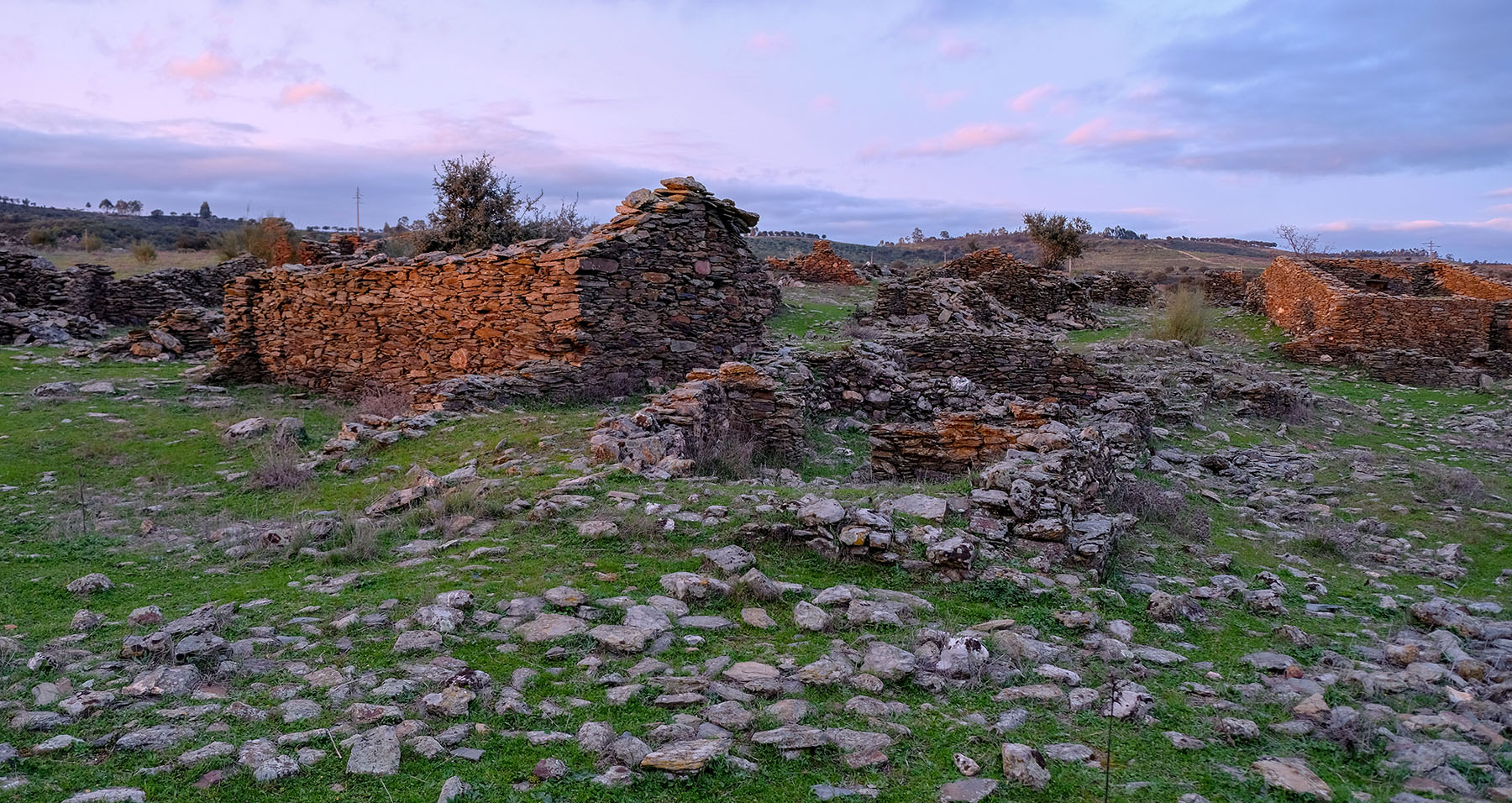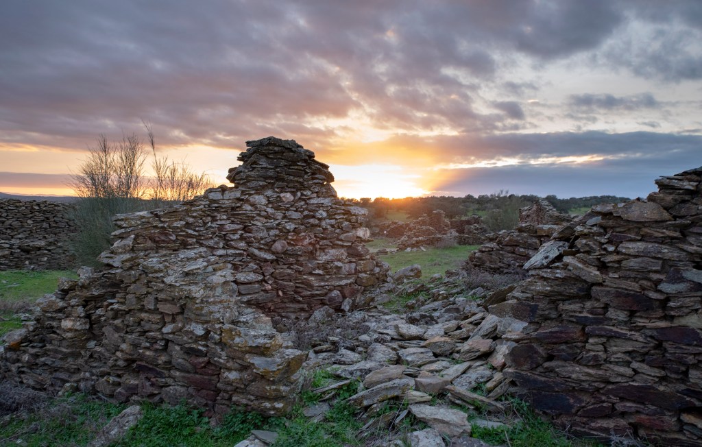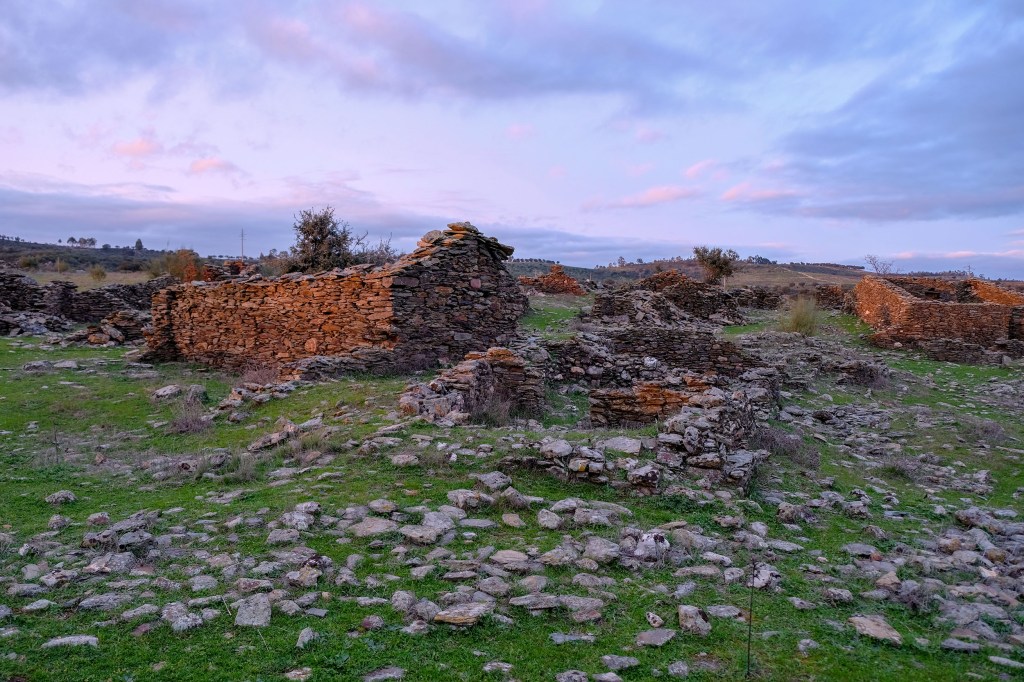Também me armei em turista e fui ver. Há um percurso pedestre e de carro é preciso perícia para subir encostas ingremes de terra batida e esventrada pelo uso. Cheguei ao por do sol e é deslumbrante. Uma extensão enorme de linhas de pedras que delimitam caminhos e casas.