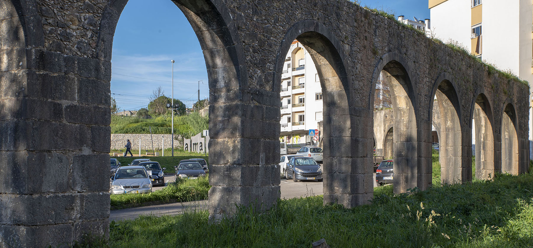 A arcaria não se deixa ofuscar pelos prédios. Ganha realce e beleza. É verdade que a construção é mais rústica do que o das Águas Livres, mas tem também apontamentos arquitetónicos interessantes como a linha dos arcos que faz um ângulo como se estivesse a desviar dos prédios e a ganhar fôlego para atravessar a ribeira de Carenque. “Faz um ângulo. Mas não é o único.