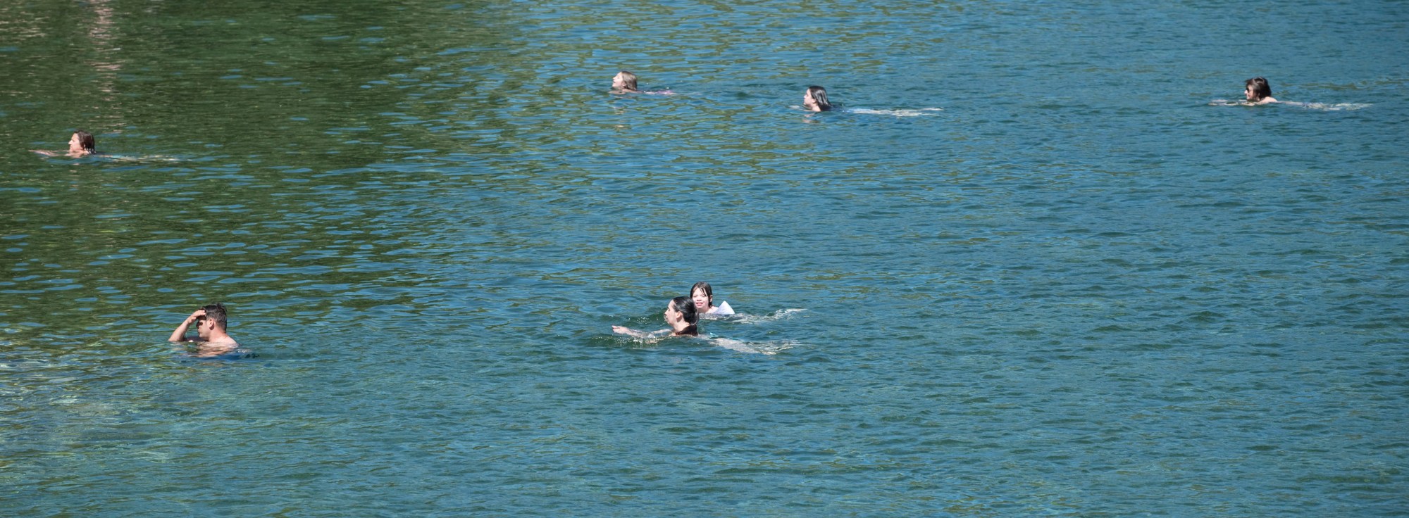 O espaço é amplo e dentro de água há recantos com pouco uso, essencialmente a montante do espelho de água. Testemunha Hélder Machado, na “segunda vez que venho este ano, e tem estado bom. Por vezes está à pinha. Mas dá para relaxar. Dá para a família vir passar um dia ou para aproveitarmos apenas uma tarde. É bom na mesma.”