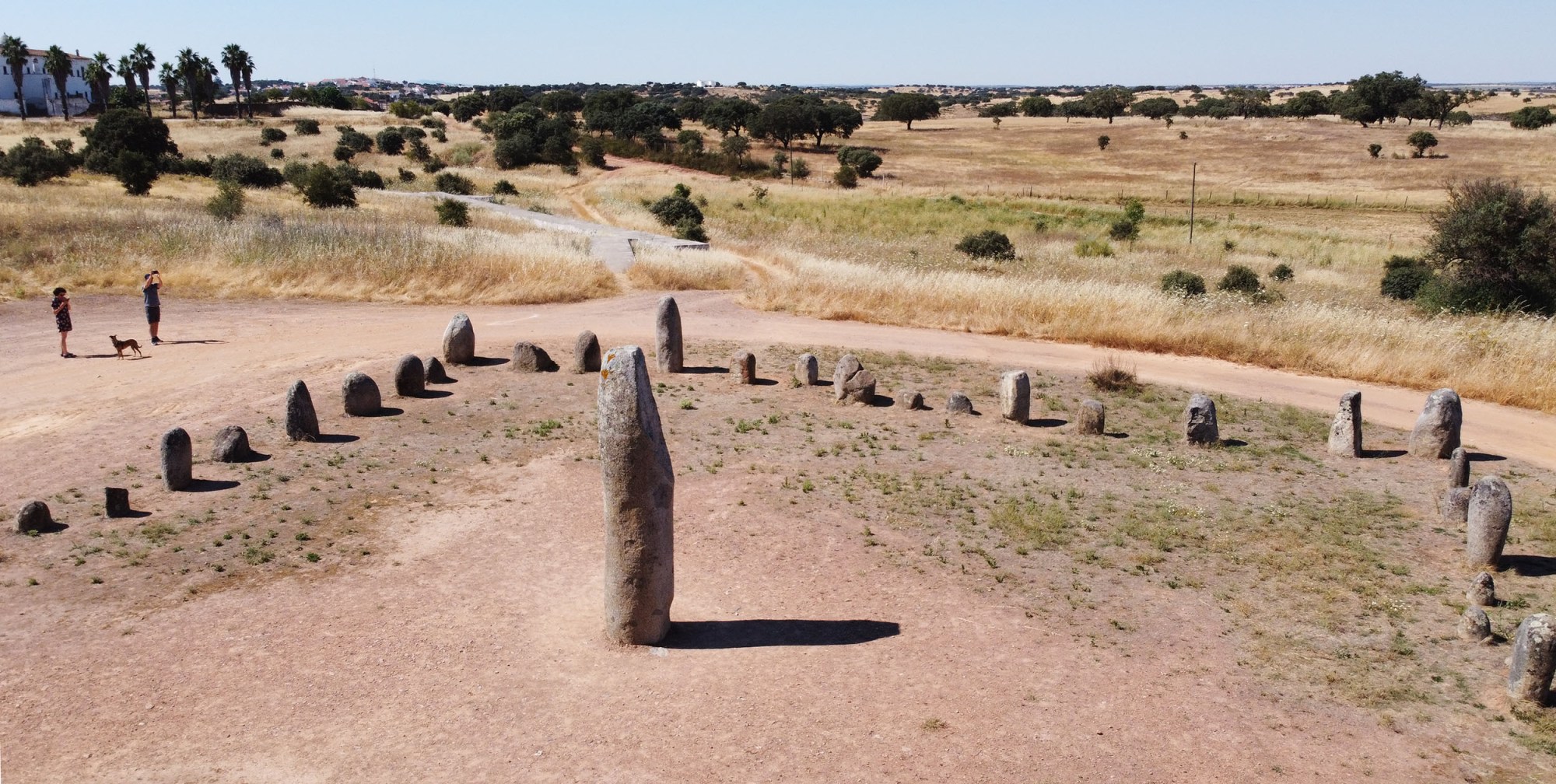 Os 55 menires de granito do Cromeleque do Xerez já conheceram outros lugares porque foi deslocado para aqui, para as imediações da aldeia de Telheiro, em 2004, para evitar a submersão com a barragem do Alqueva.