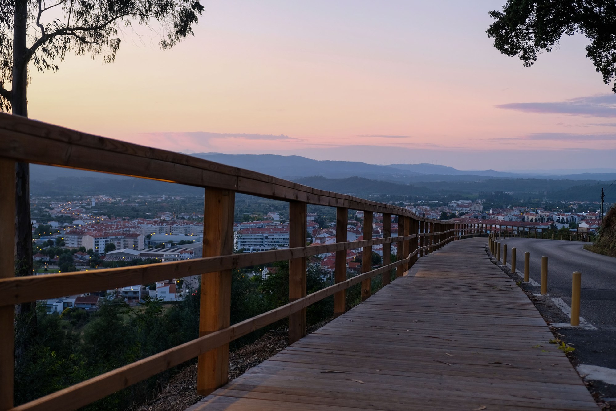 São passadiços panorâmicos e até dá para fazer a caminhada ao princípio da noite porque estão iluminados. É mais ou menos nesta altura que temos uma das vistas mais interessantes, uma panorâmica da vila da Lousã.