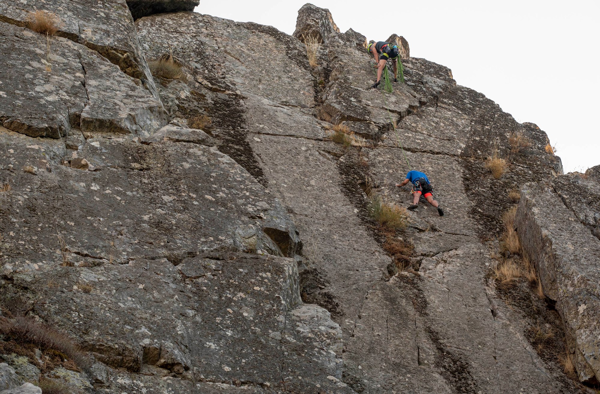 O cenário natural é fantástico. Um vale com centenas de metros de profundidade emparedado em escarpas enormes. O cinzento da rocha passa para segundo plano com corpos a agarrem-se a fissuras para escalarem. Parecem lapas agarradas à rocha.