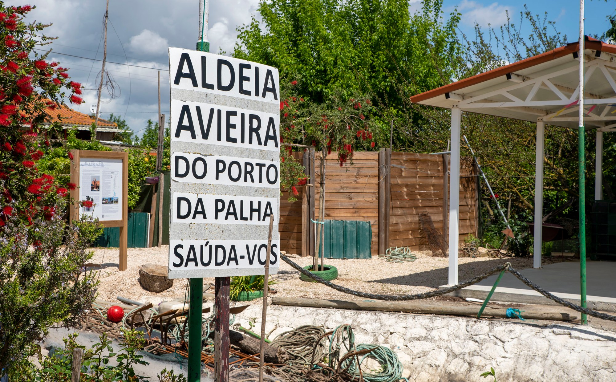 A rampa que dá acesso ao rio e que serve de embarcadouro está rodeada de árvores, instrumentos de pesca e informação sobre a história do Lezirão e a cultura avieira.