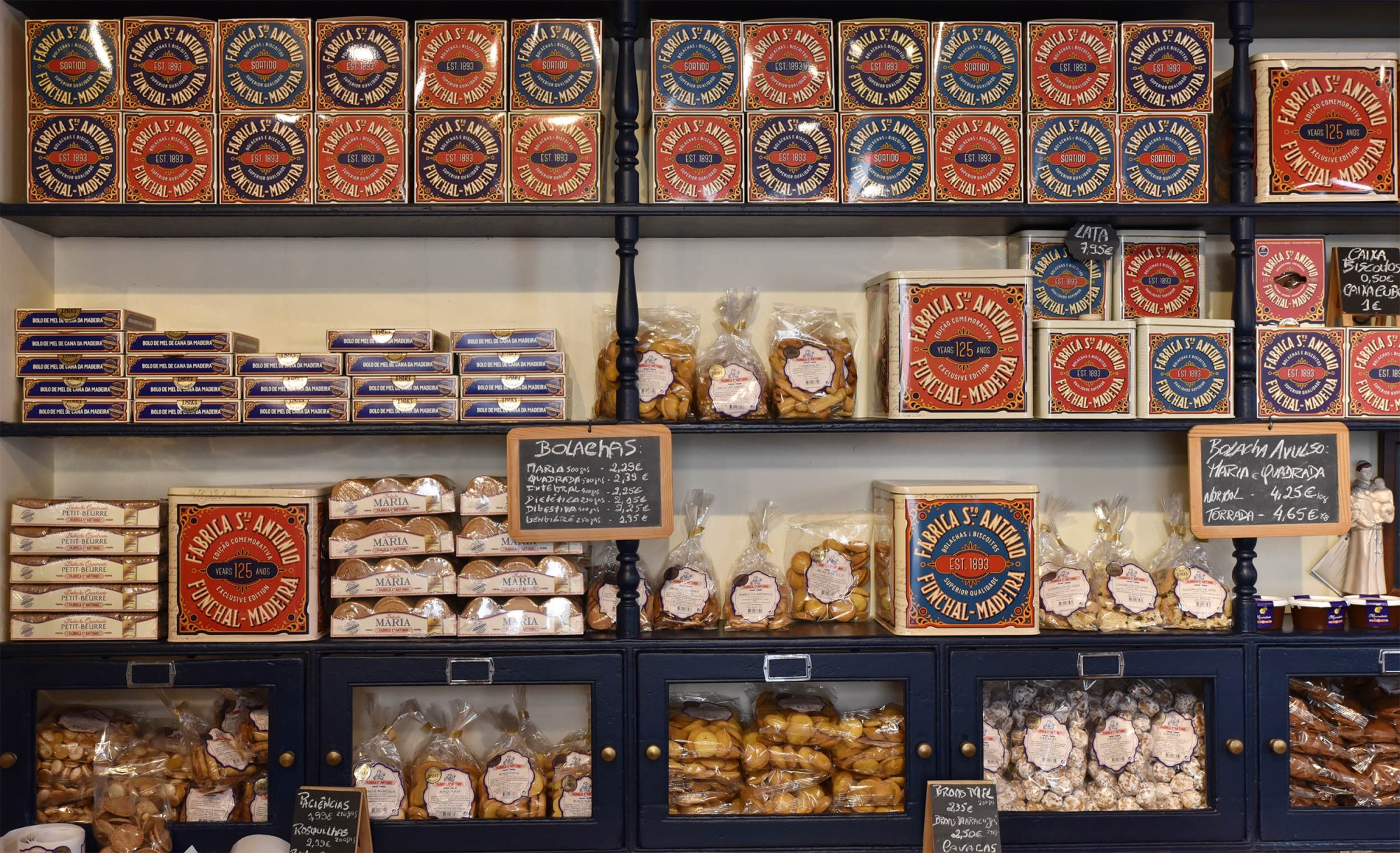 Bolo de mel de cana, biscoitos, compotas, bolachas… é uma enorme variedade de doces que nos levam à Fábrica de Santo António, no Funchal. No entanto, quando entramos o que mais nos cativa a atenção é o colorido das latas que enchem as prateleiras.