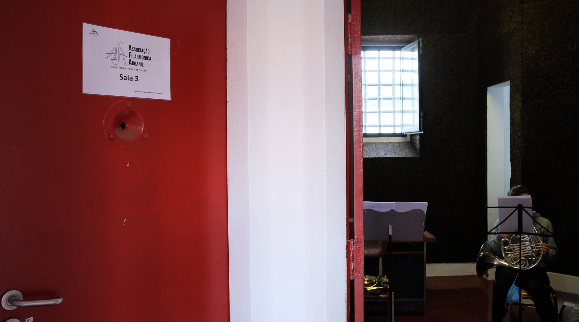 As celas são espaços pequenos. As grades de ferro continuam nas janelas e as paredes estão forradas com cortiça para ajudar na acústica de quem está a aprender a tocar instrumentos musicais na escola de música da Filarmónica de Arganil.