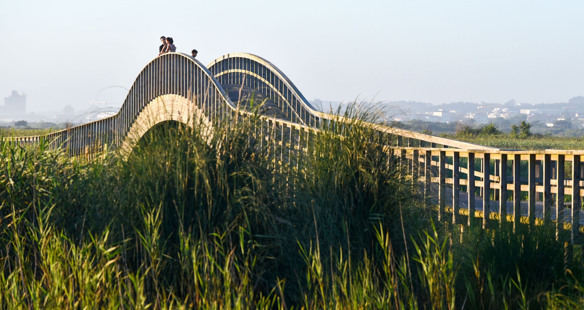É uma imersão na natureza entre o meio marítimo e terrestre. Percorremos os 8km dos passadiços da barrinha de Esmoriz a ouvir o ecoar das ondas do mar e a caminhar numa estrutura de madeira rodeada de vegetação e água.
