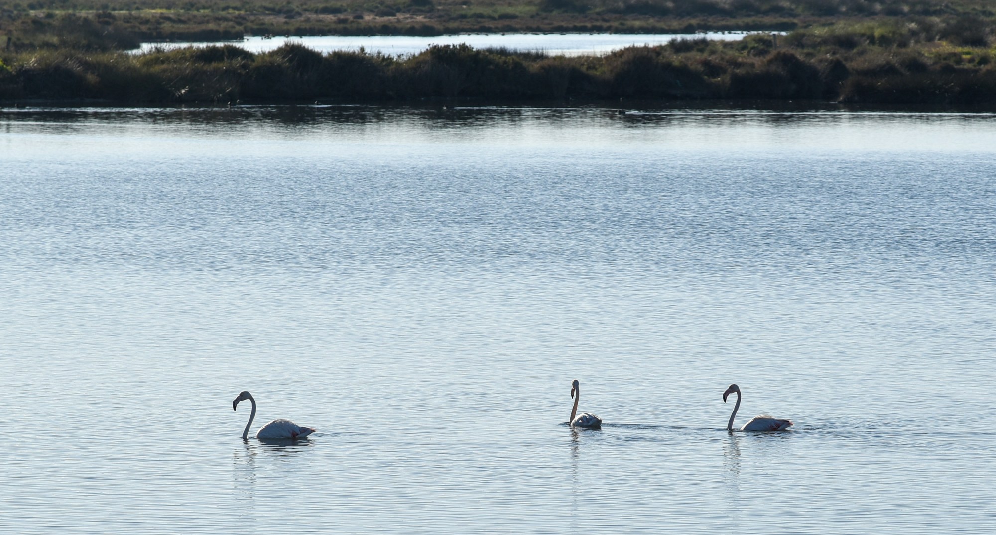Em algumas épocas também é frequente vermos flamingos. “Além de flamingos há cegonhas, patos… Normalmente há mais nesta zona”.