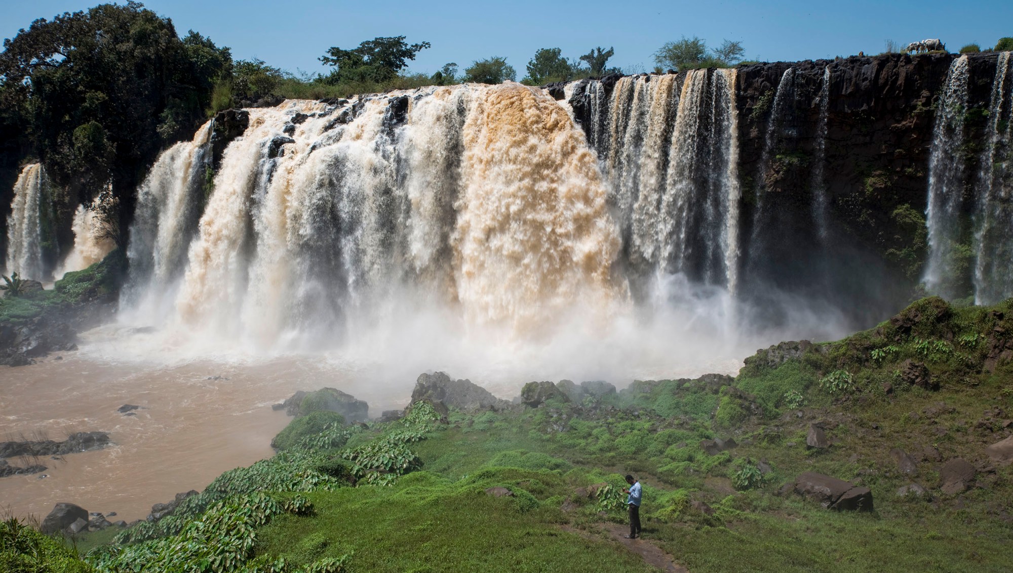 São das mais imponentes em África. Também impressionou Pedro Pais. Descreve na sua História da Etiópia que a água cai a pique por rochas que terão de altura catorze braças (cerca de 30 metros) e no inverno a queda “levanta a água como fumo no ar, tanto que se vê de muito longe”.