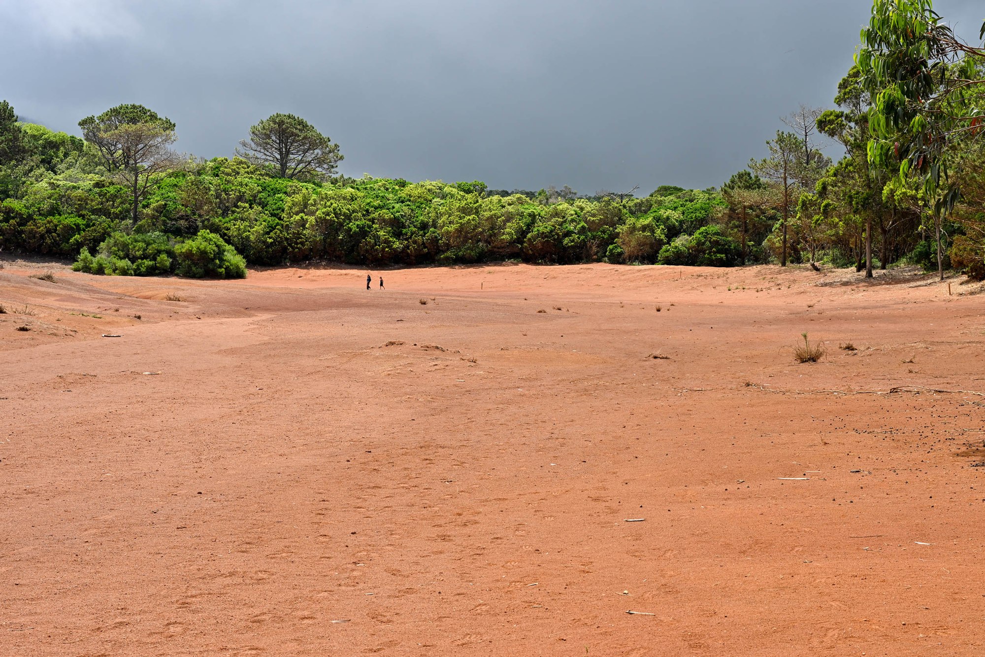 Há quem caminhe à deriva, numa breve descoberta do ‘deserto’. Outros aproveitam os trilhos e atravessam parte da mata até à costa, com miradouros e arribas profundas e escarpadas.