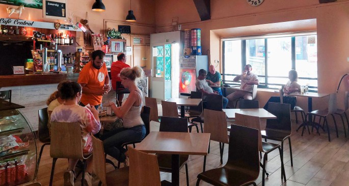 O Café Central faz jus ao nome e nas últimas décadas continua a ser um dos pontos de encontro da vila. Preserva mobiliário antigo e também muitas memórias como a de um notário que “distribuía” carolos e caldinhos aos miúdos que entravam no café. Quando fiz a quarta classe convidei alguns amigos e fomos celebrar … Continue a ler Penamacor: o Café Central de memórias e caldinhos