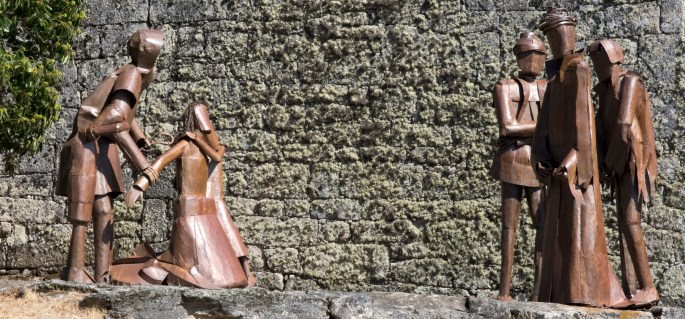 No alto de Jarmelo, nas traseiras do edifício da antiga Câmara Municipal, D. Inês de Castro está ladeada de duas crianças, ajoelhada e olha para três homens que revelam insensibilidade à sua dor. As estátuas em metal são do artista Rui Miragaia e inspiram-se no quadro de Columbano Bordalo Pinheiro intitulado O Drama de Inês de … Continue a ler D. Pedro I, o Cruel, em Jarmelo