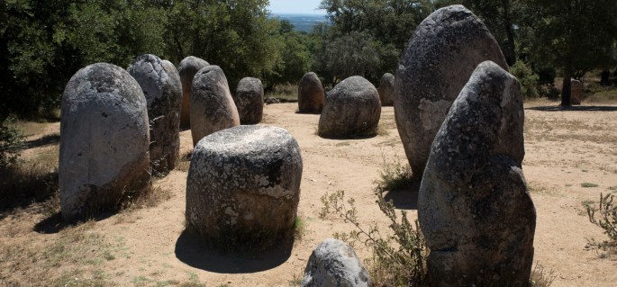 O Crolmeque dos Almendres, no concelho de Évora, tem 94 menires e é o maior da Peninsula Ibérica.