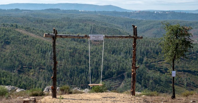 Baloiço dos Castelos de Carapinha com vista para a serra do Açor