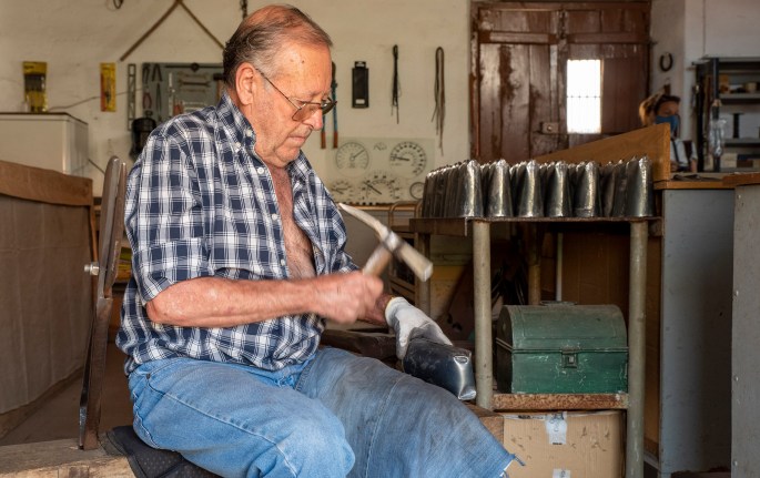 Joaquim José tem um trabalho árduo. Marteladas repetidas que modulam uma chapa de ferro numa bigorna até ganhar a forma de um chocalho. Um som que entra nos ouvidos “do chocalheiro, Joaquim José Chocalheiro” há quase 70 anos. A loja e oficina ficam numa das ruas principais de Reguengos de Monsaraz. Joaquim José produz e … Continue a ler Chocalheiro Joaquim José – a arte de fazer chocalhos “à porrada”